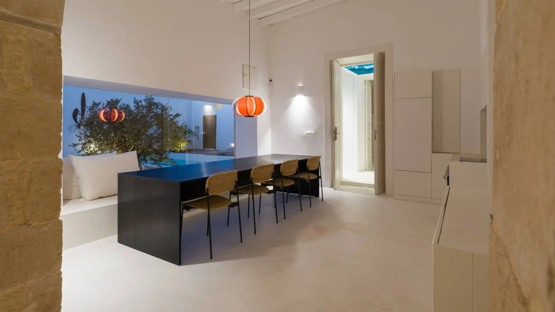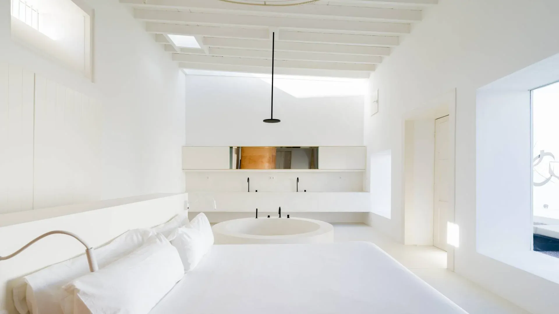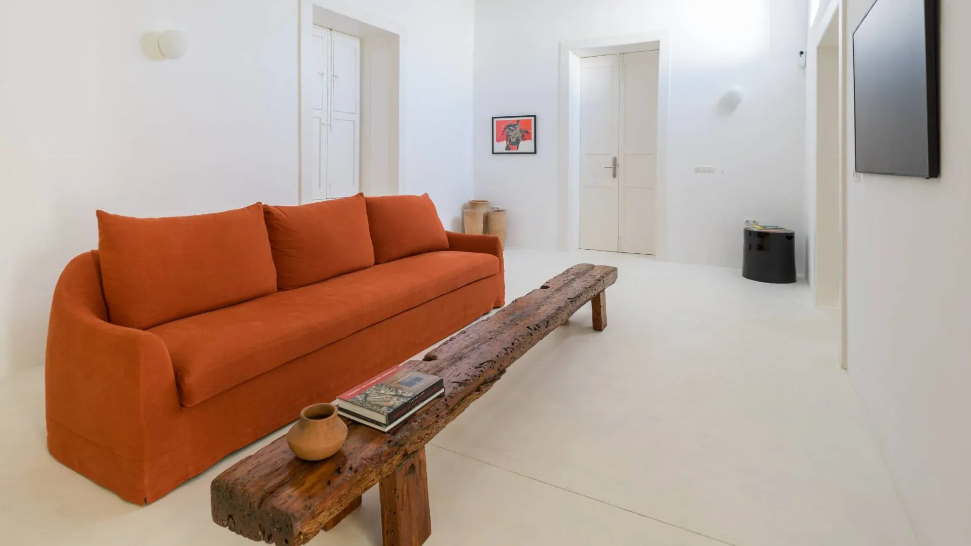 This unit can accommodate 2 people. It features a kitchen-dining area, a spacious living room, a bedroom with a walk-in closet, and a bathroom with a rain shower in an open-plan space.
