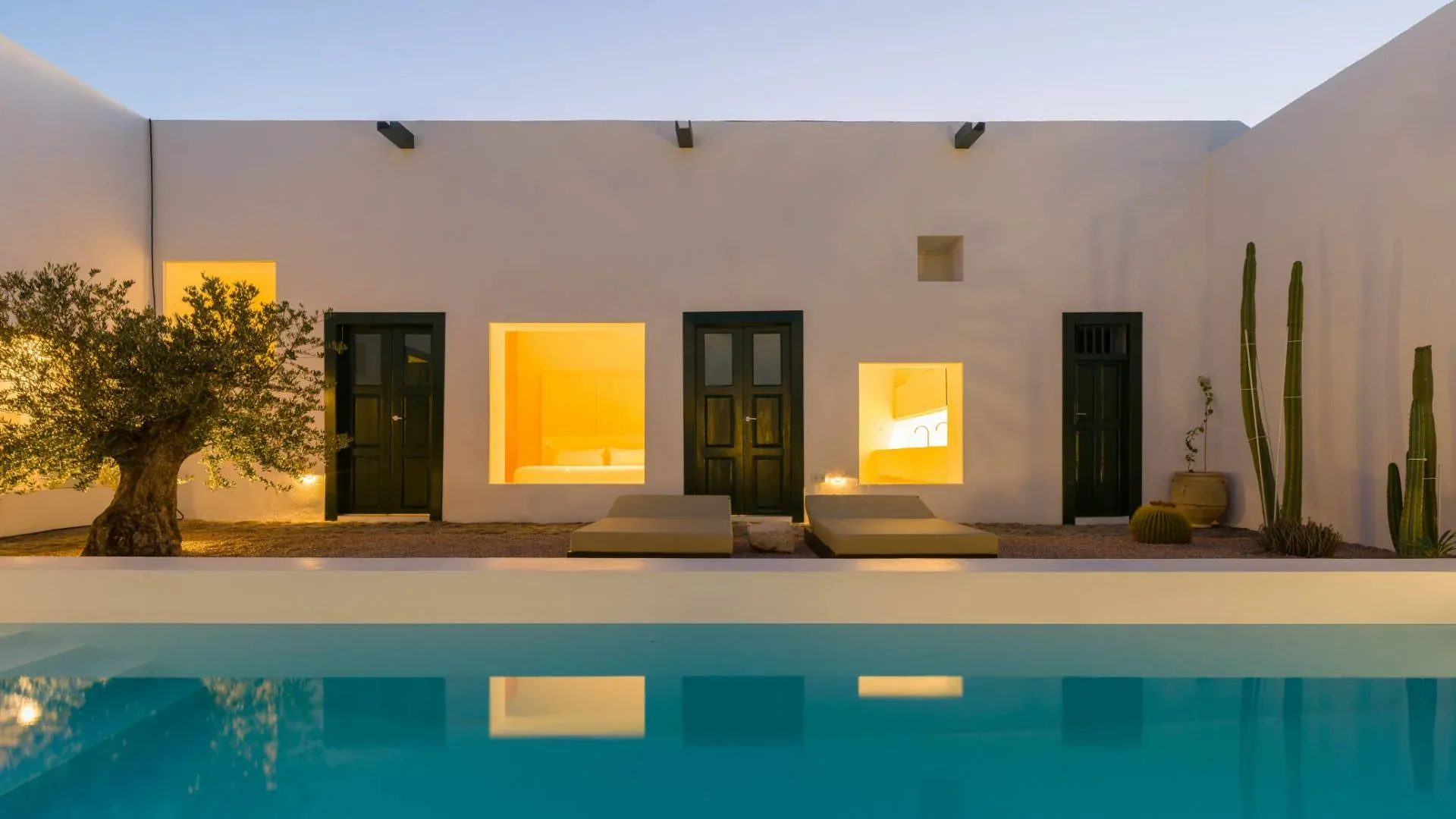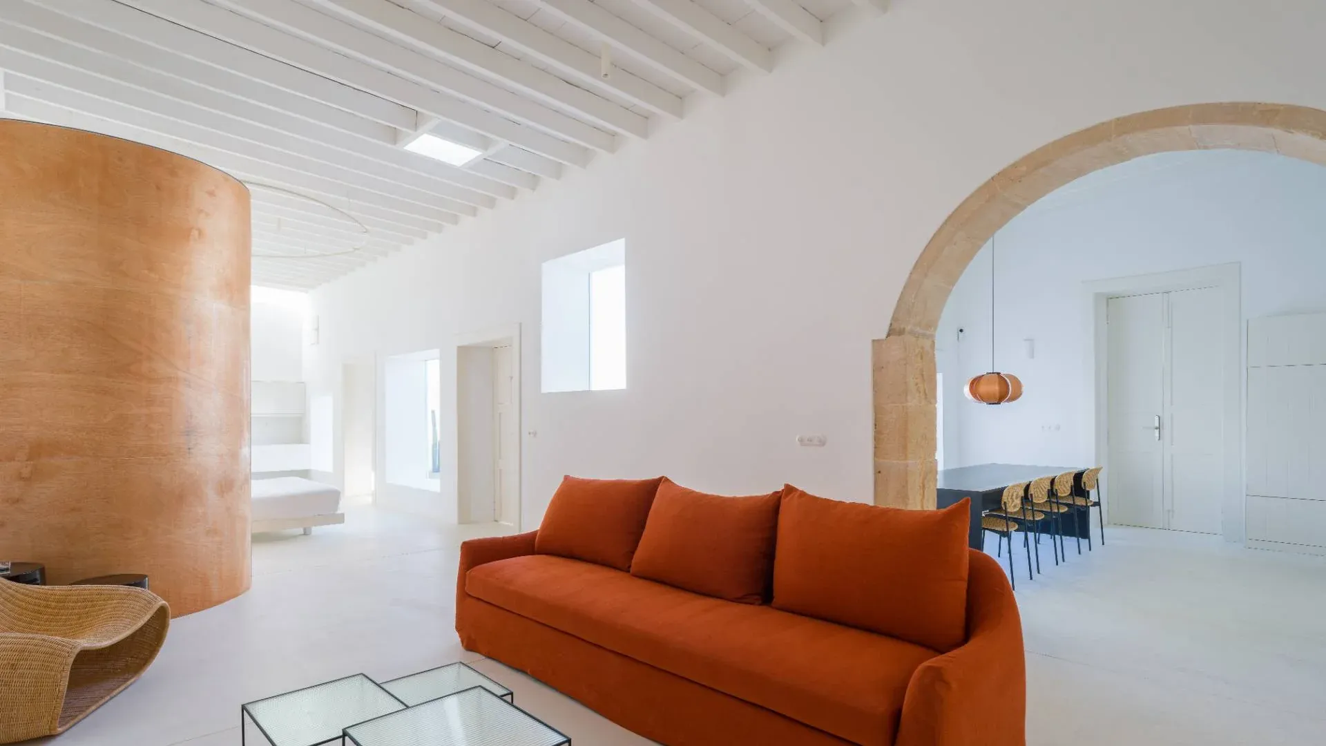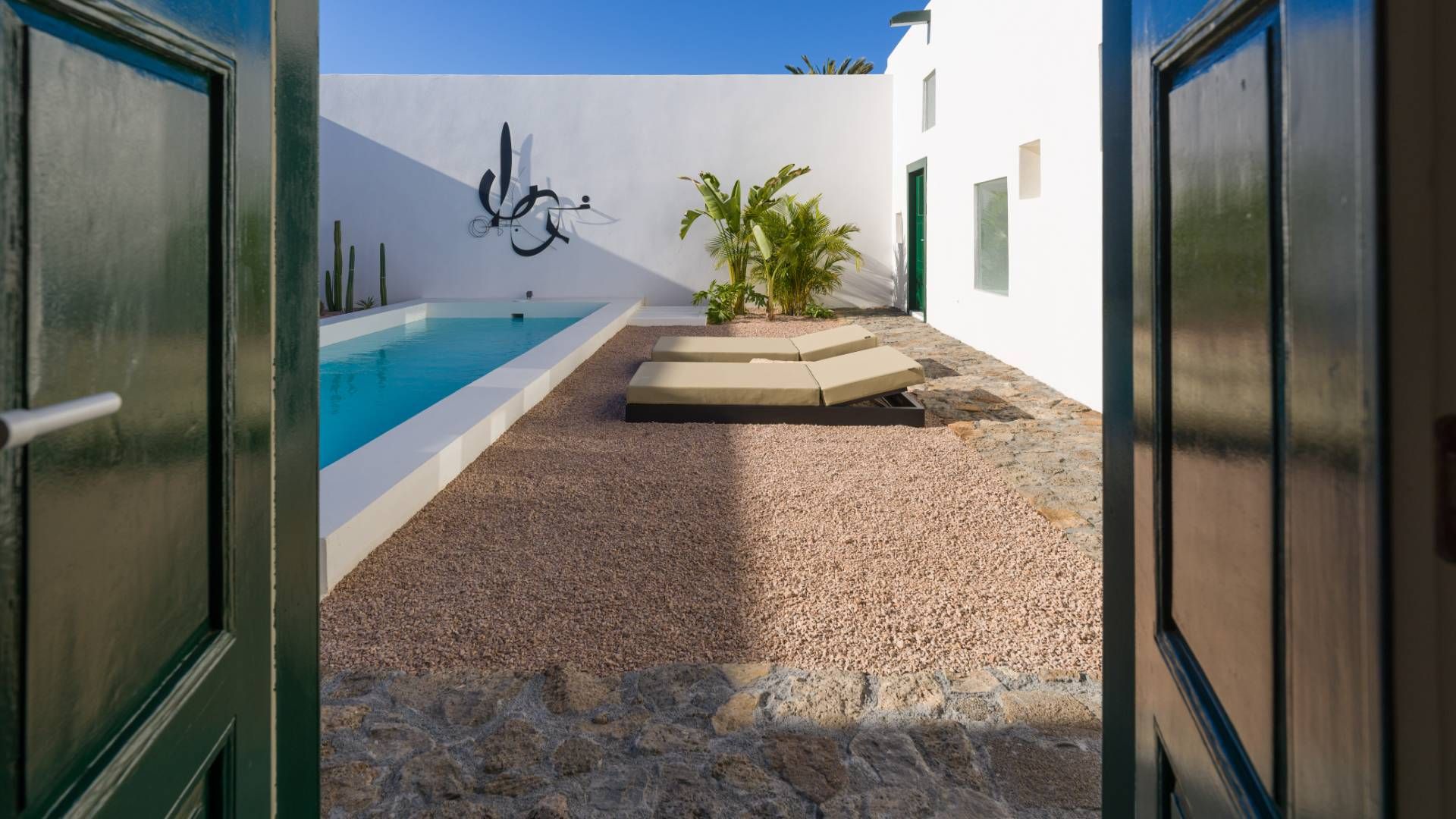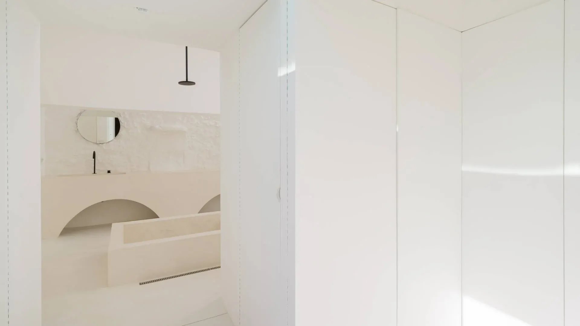 This unit can accommodate 2 people. It features a kitchen-dining area, a spacious living room, a bedroom with a walk-in closet, and a bathroom with a rain shower in an open-plan space.