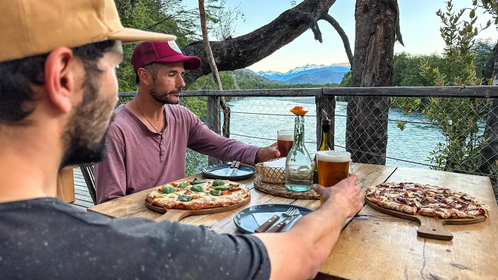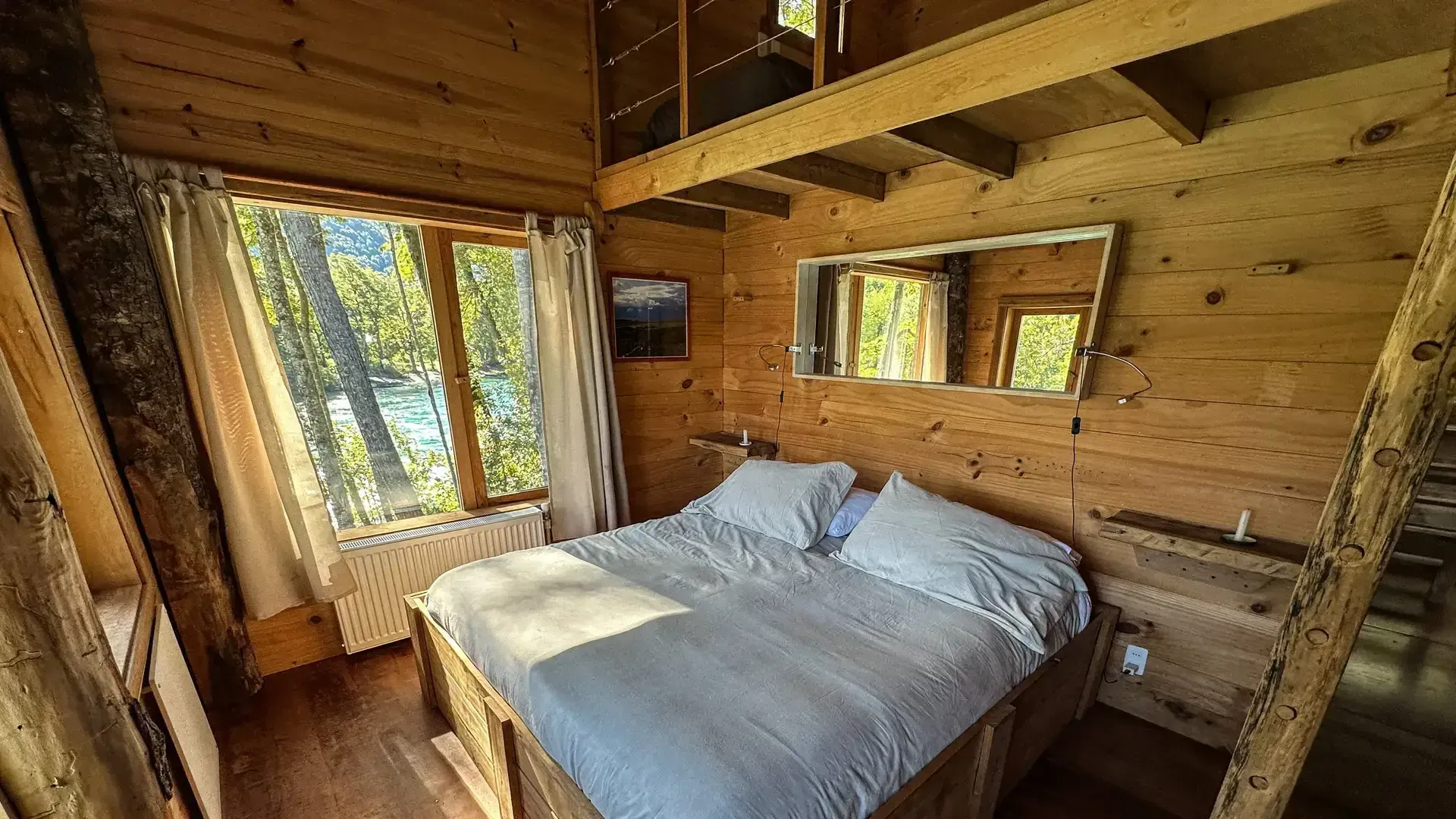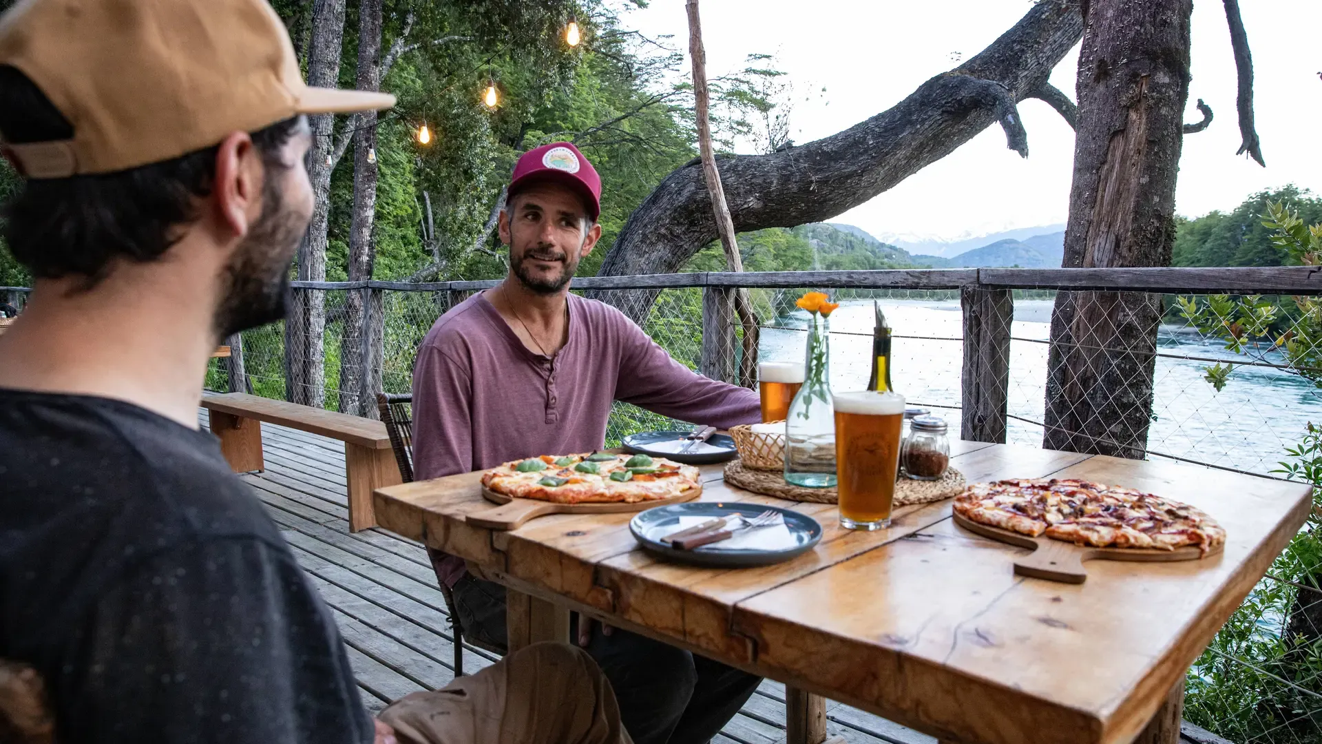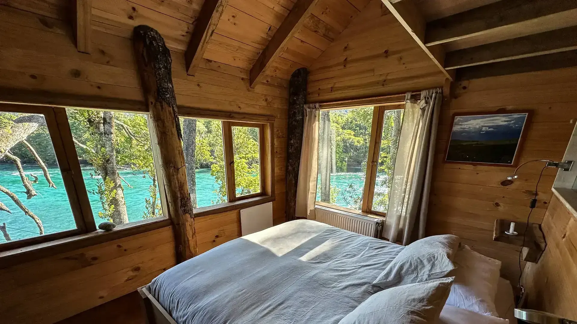 Constructed with warm timber and expansive windows that draw in the patagonian air, the building seems to echo the rhythm of the river below. Inside, common spaces beckon with soft lighting and comfortable furnishings, while the upstairs rooms open onto vistas of flowing water and mountain ridges.