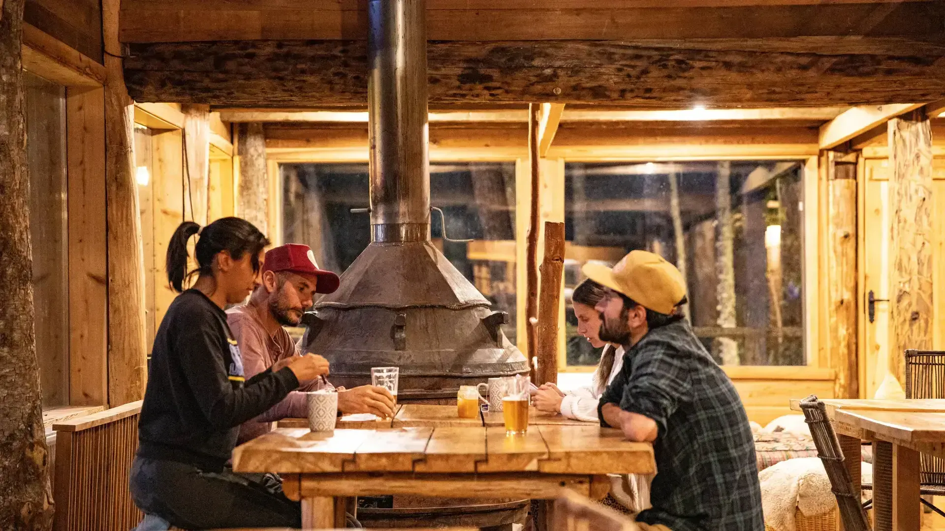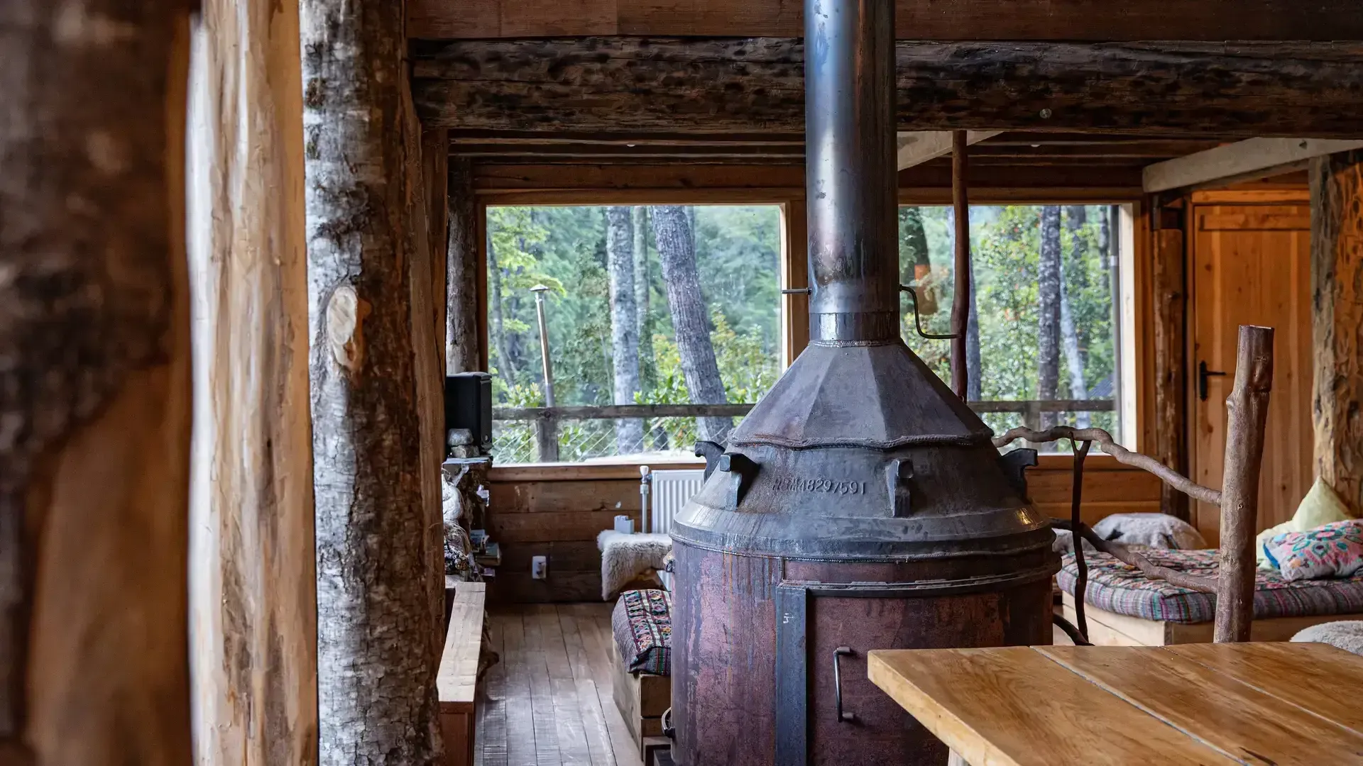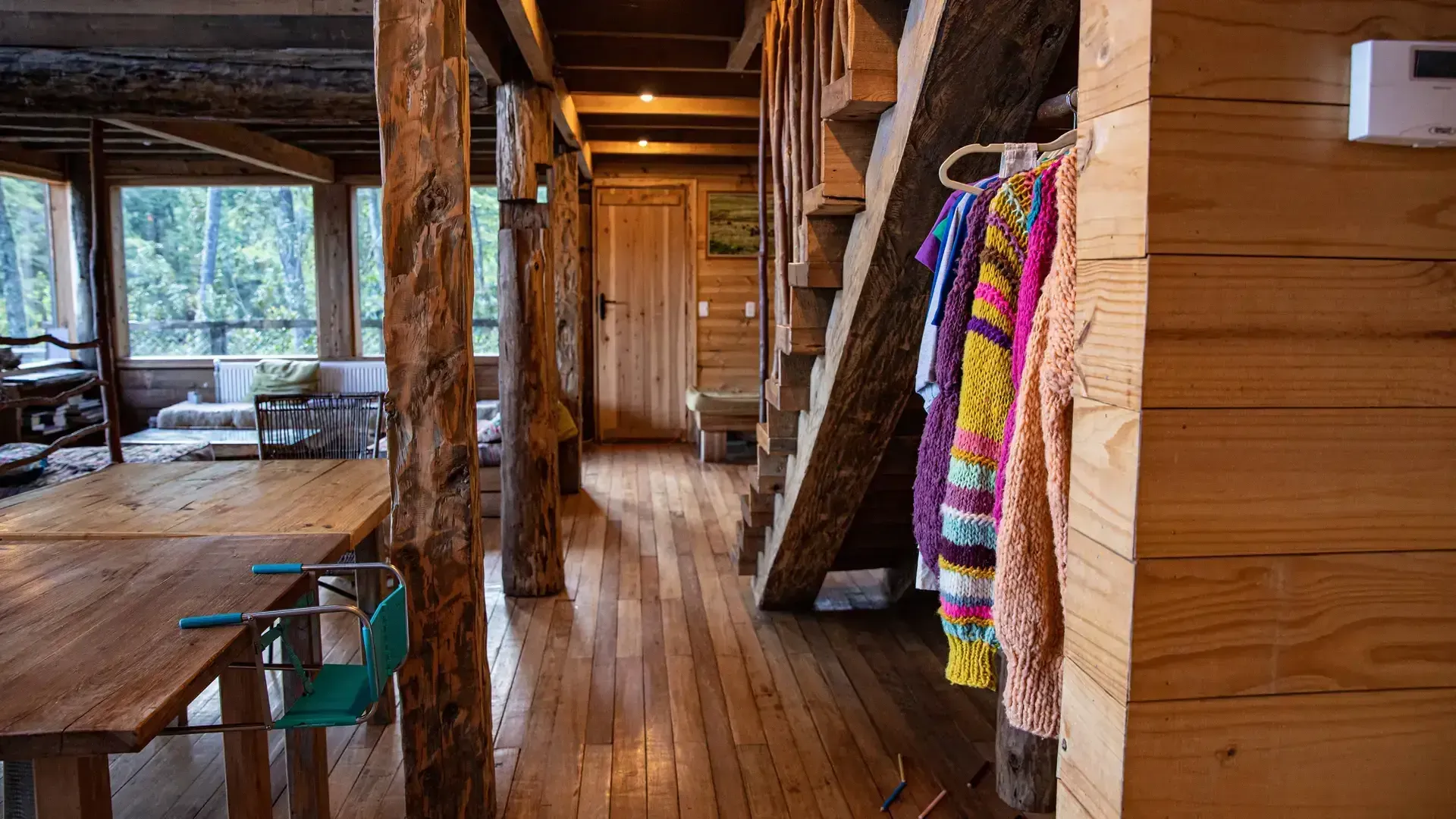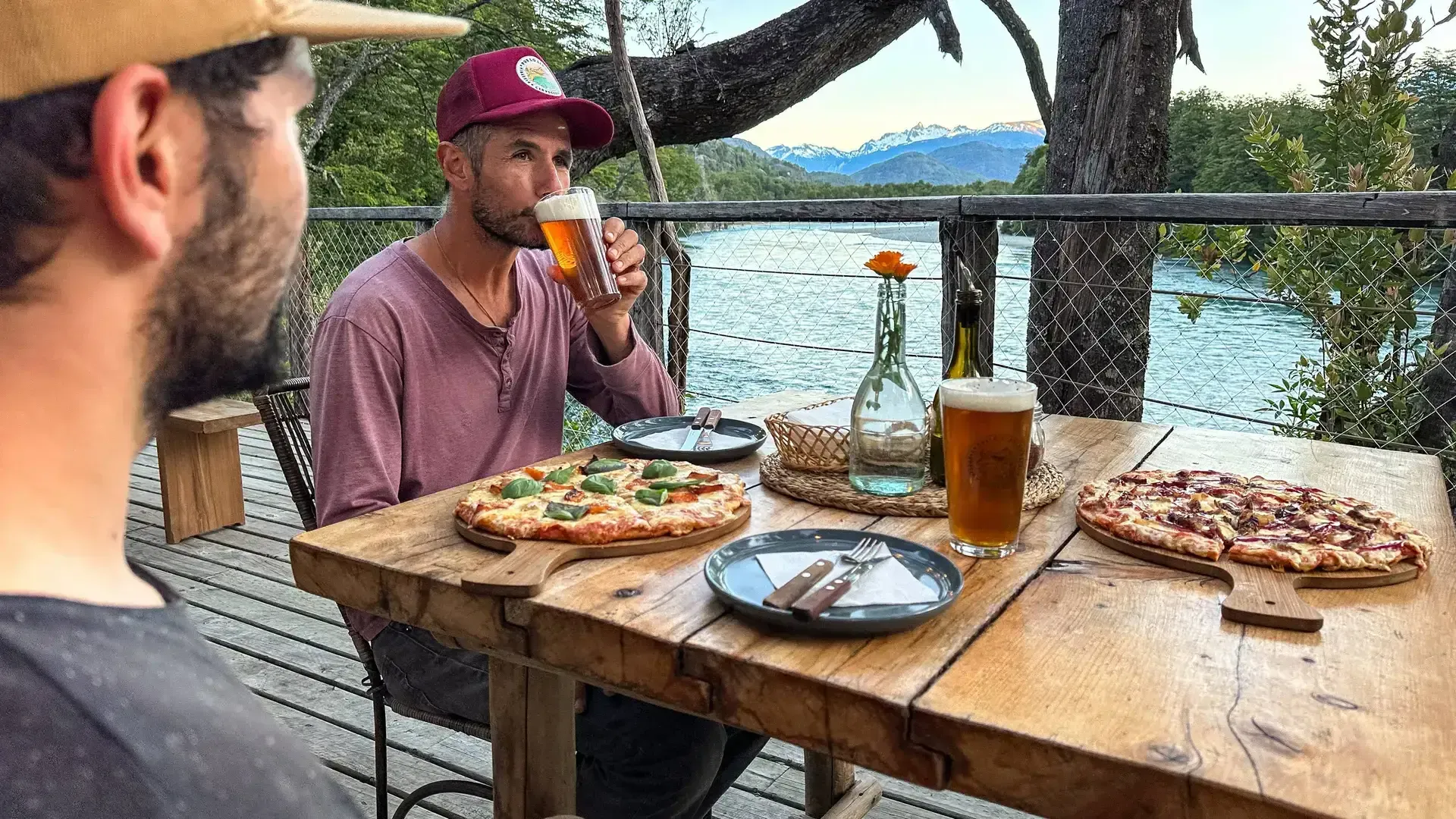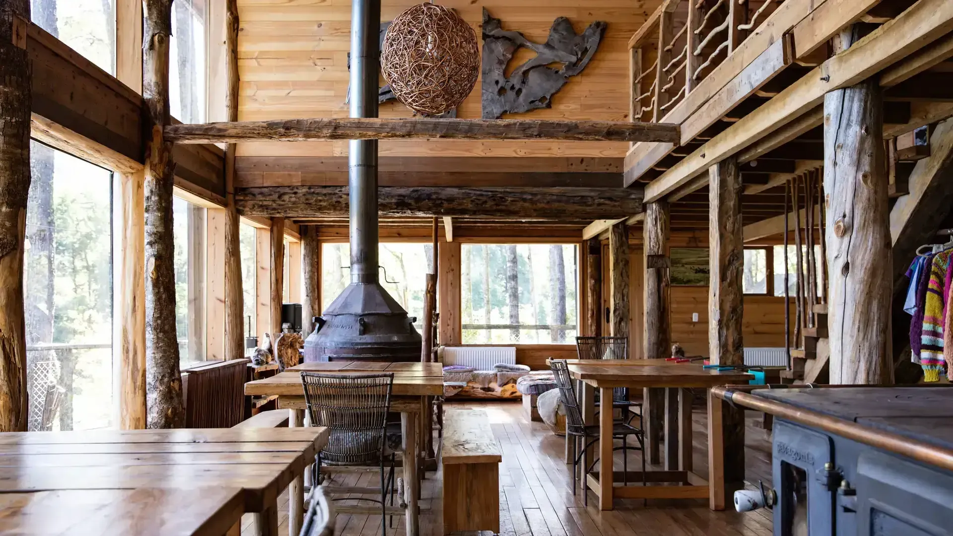 Constructed with warm timber and expansive windows that draw in the patagonian air, the building seems to echo the rhythm of the river below. Inside, common spaces beckon with soft lighting and comfortable furnishings, while the upstairs rooms open onto vistas of flowing water and mountain ridges.