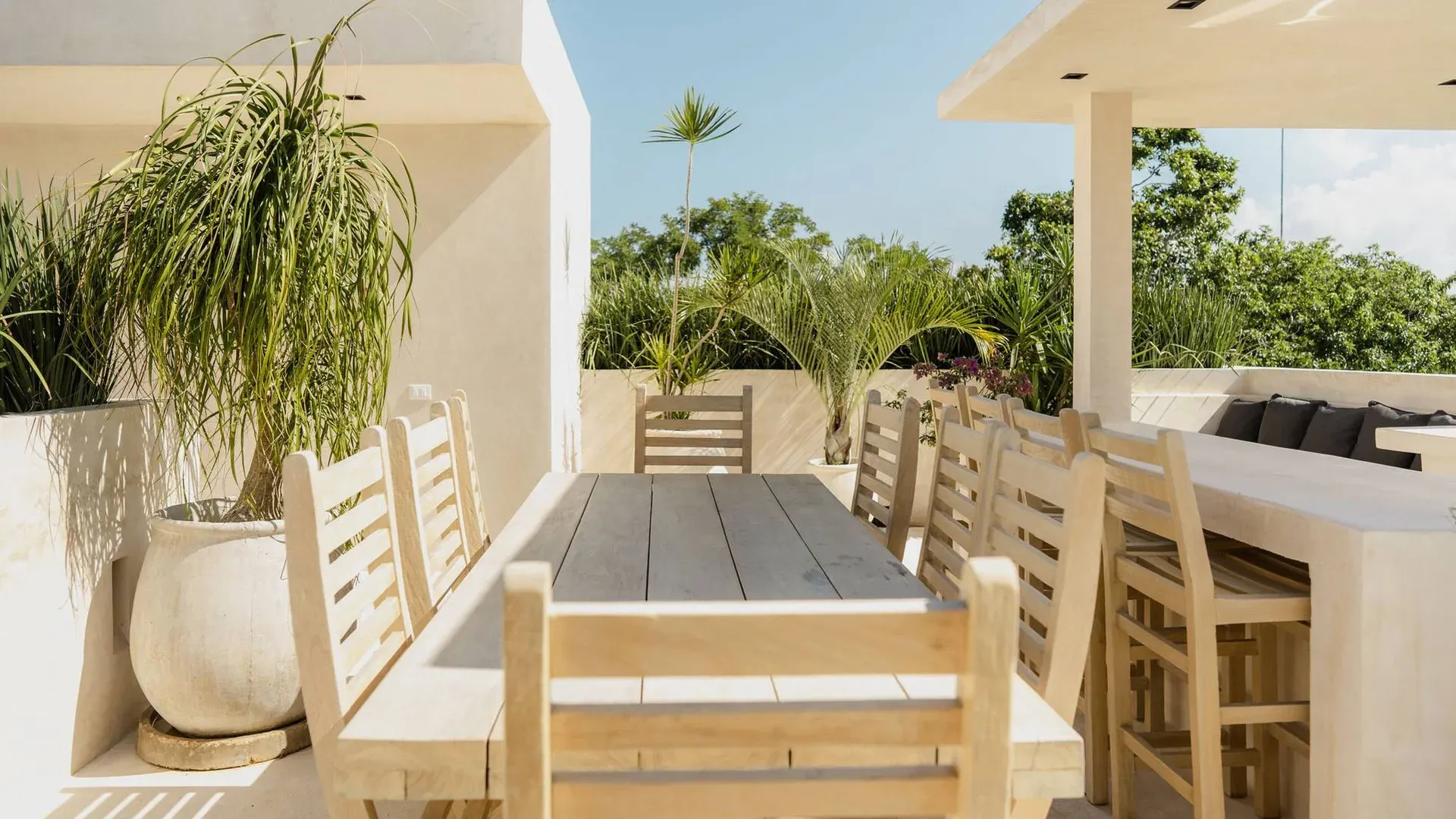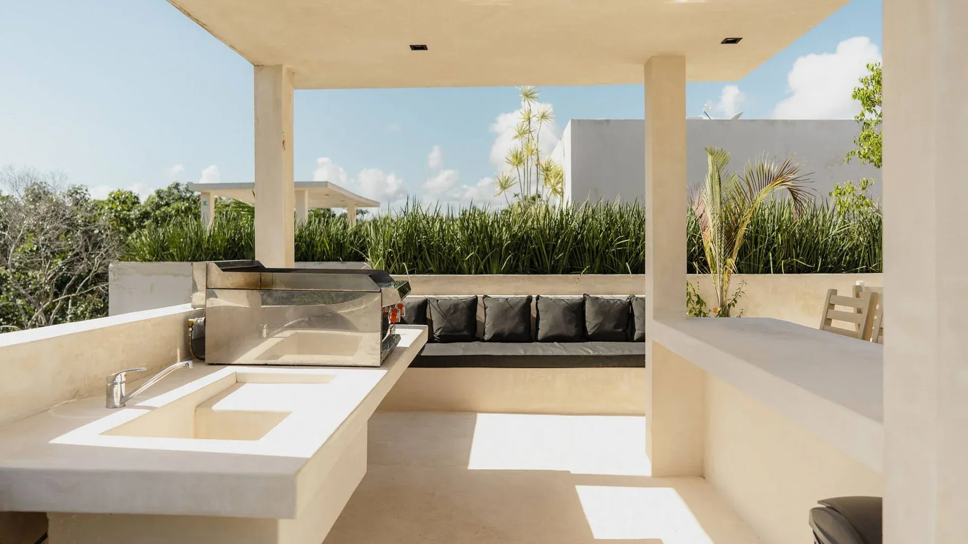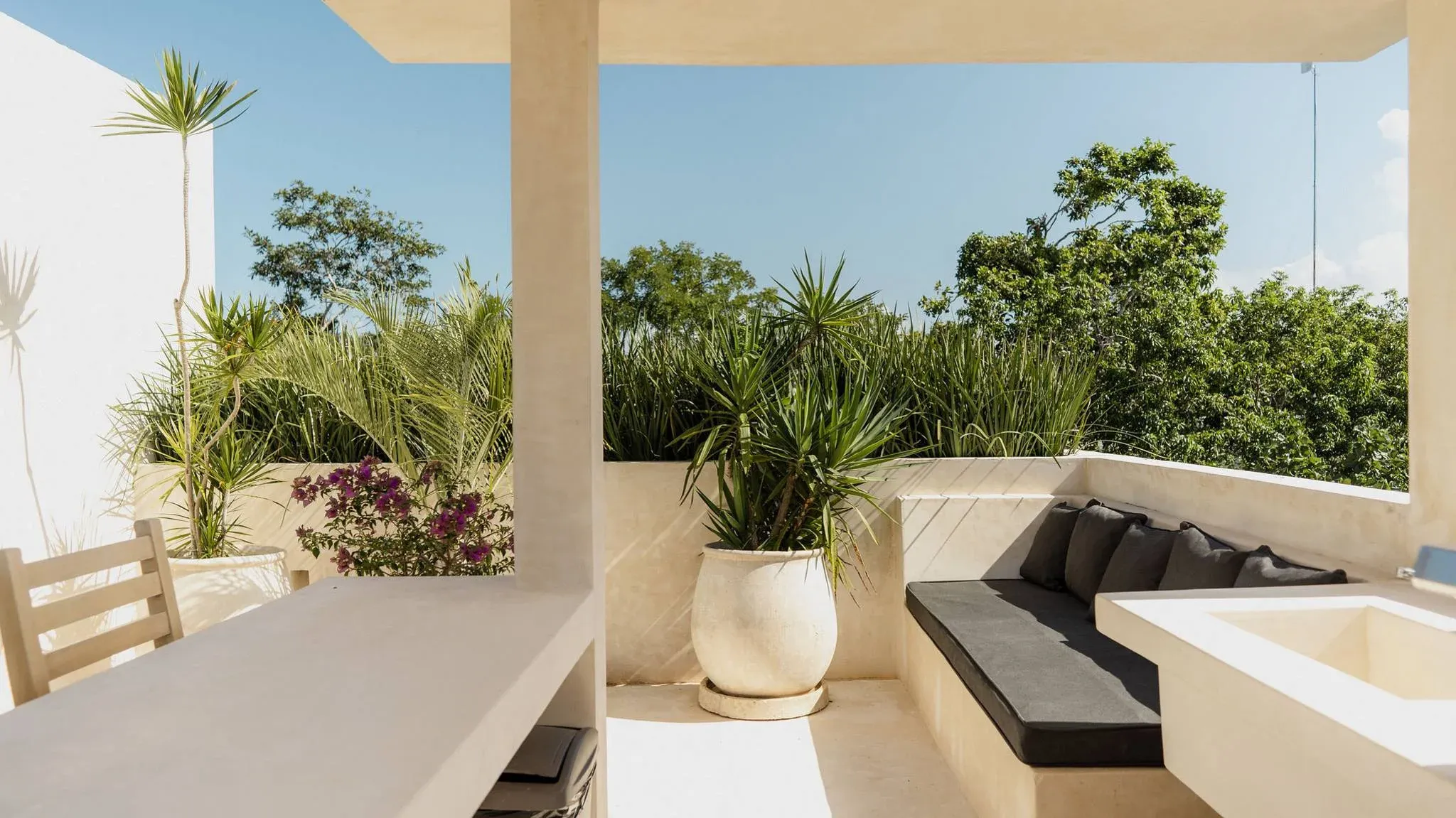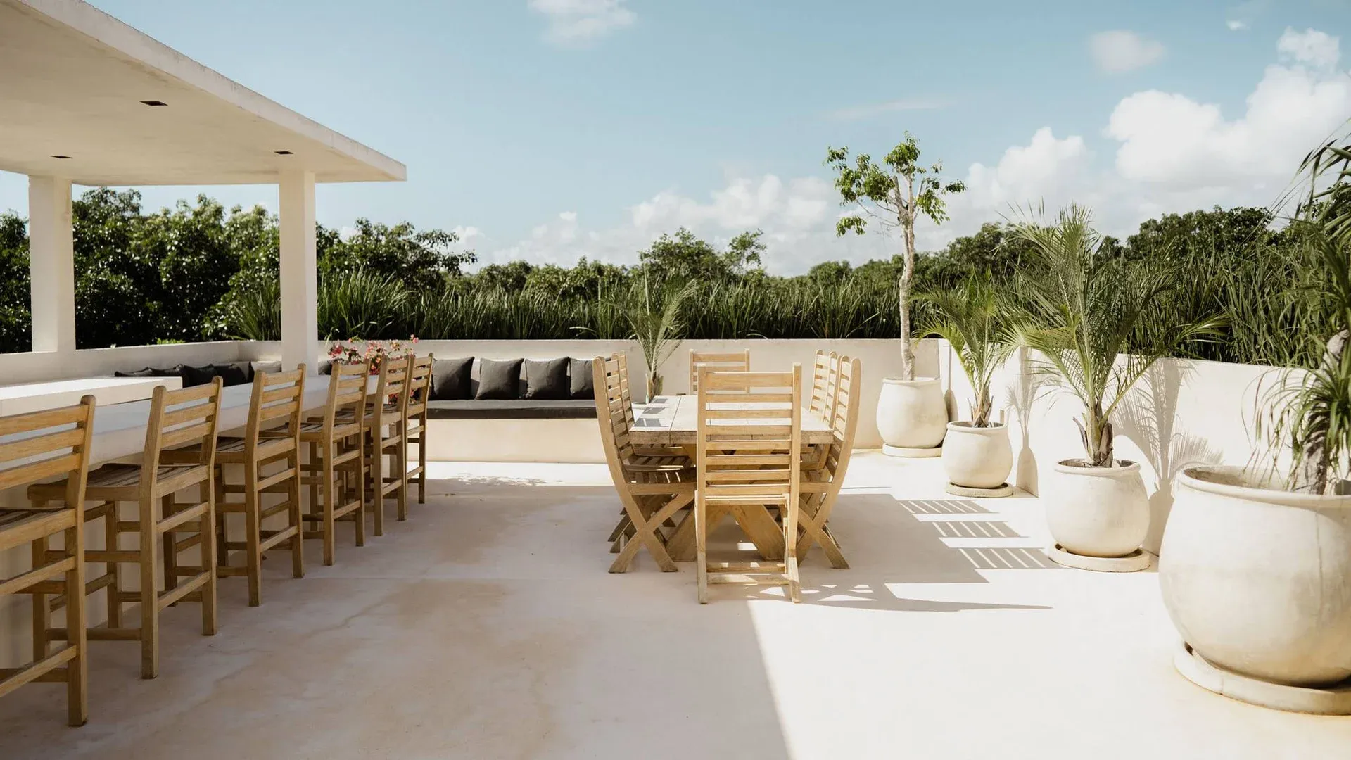 Jashita Villas Tulum epitomises a fusion of contemporary urban design and Mexico's rustic aesthetic. This architectural approach harmonizes modern lines and materials with traditional elements, resulting in spaces that are both elegant and grounded. The use of natural materials and neutral palettes enhances the connection between the built environment and the lush tropical landscape, creating a seamless indoor-outdoor living experience.