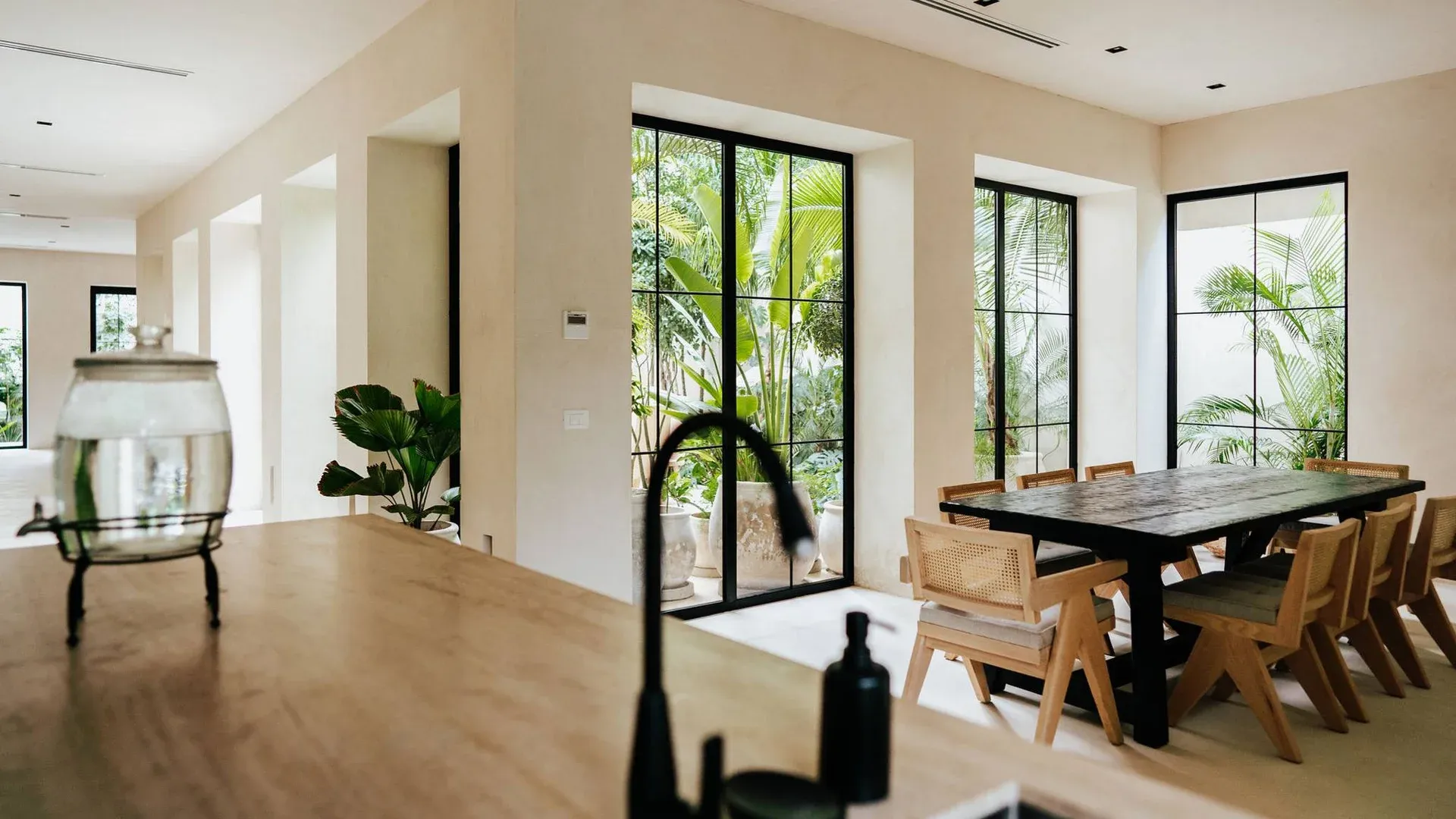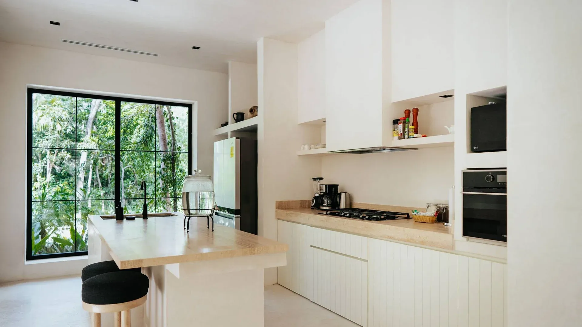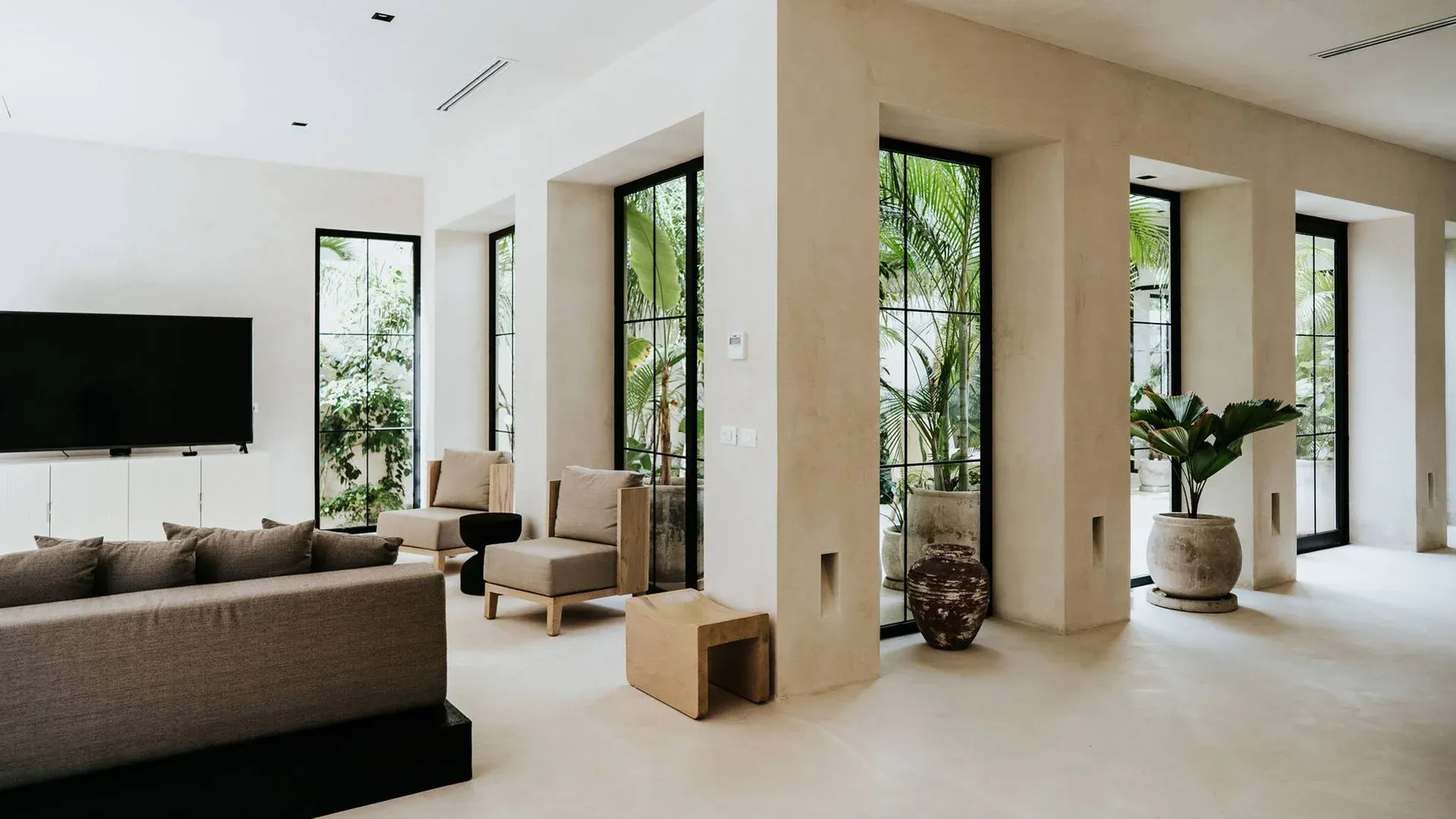 Jashita Villas Tulum epitomises a fusion of contemporary urban design and Mexico's rustic aesthetic. This architectural approach harmonizes modern lines and materials with traditional elements, resulting in spaces that are both elegant and grounded. The use of natural materials and neutral palettes enhances the connection between the built environment and the lush tropical landscape, creating a seamless indoor-outdoor living experience.