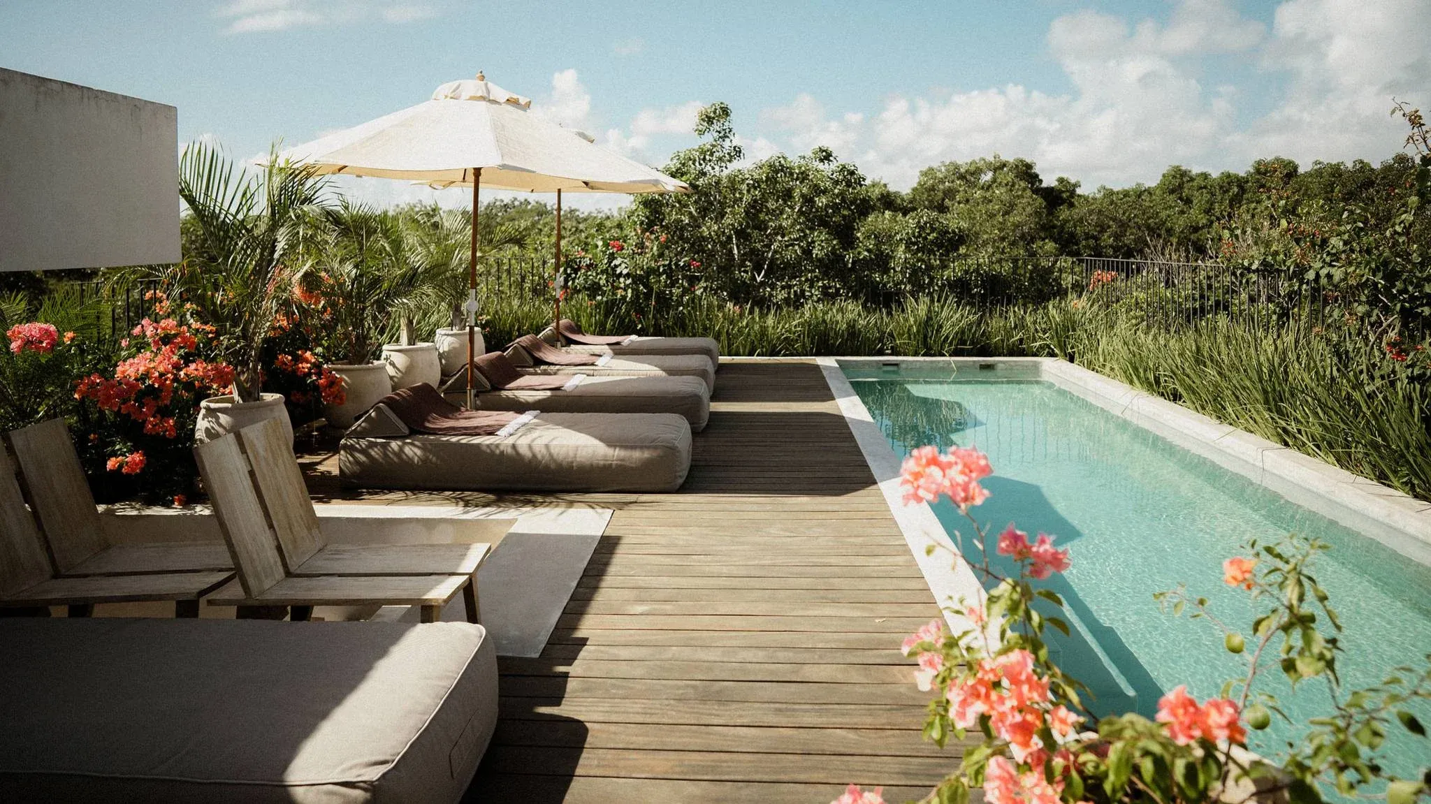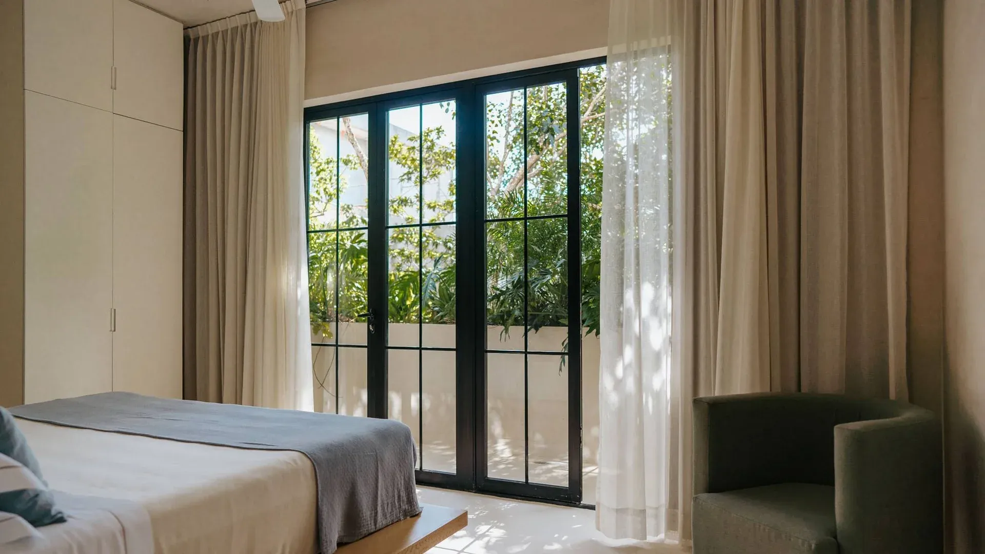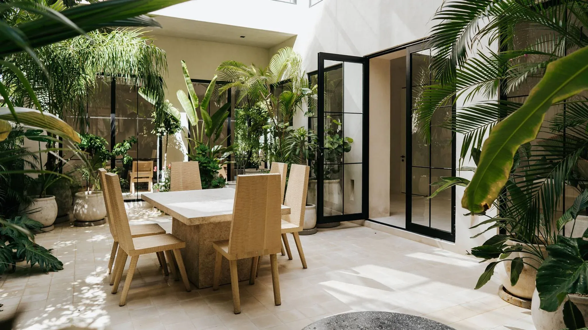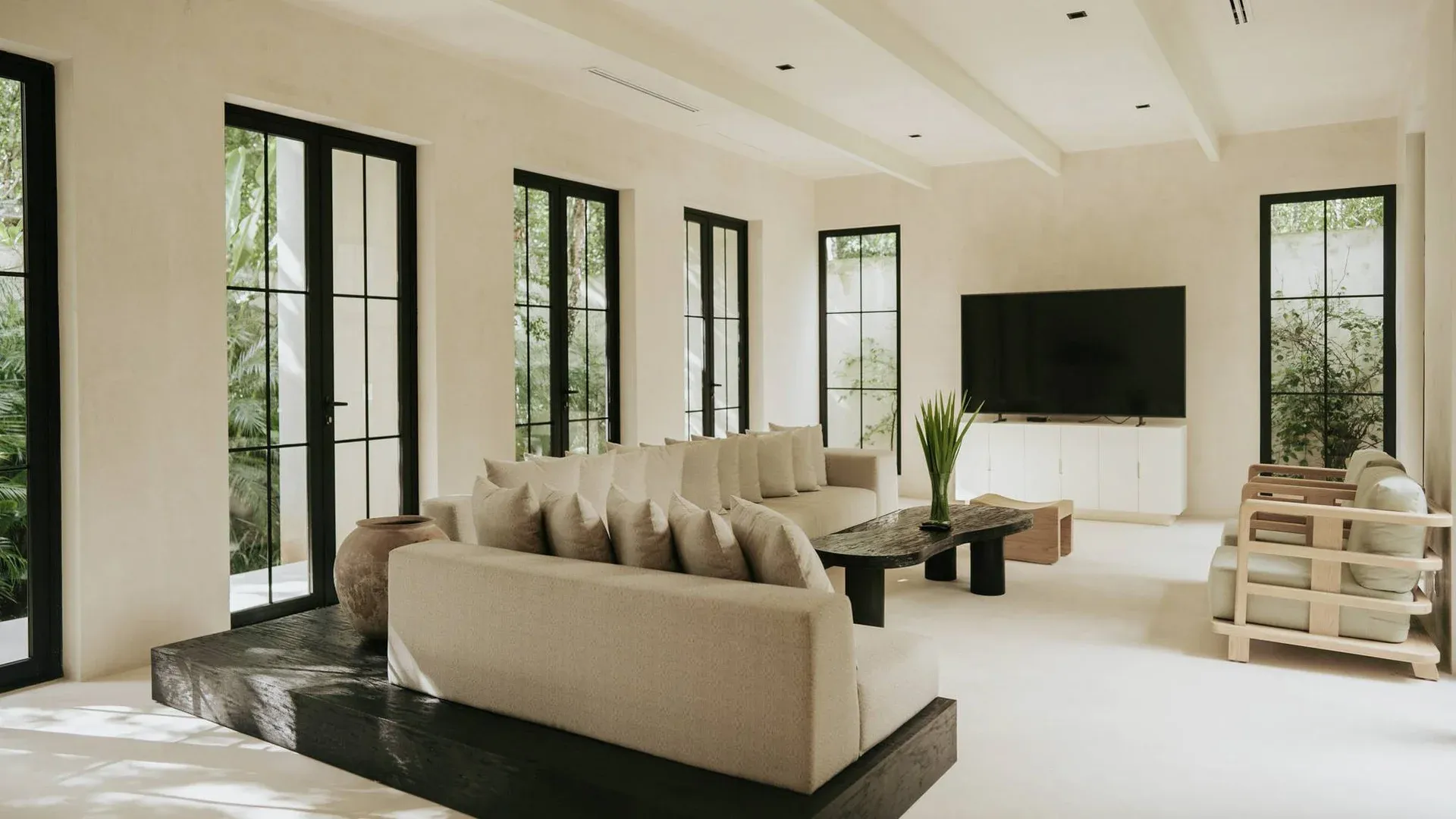 Jashita Villas Tulum epitomises a fusion of contemporary urban design and Mexico's rustic aesthetic. This architectural approach harmonizes modern lines and materials with traditional elements, resulting in spaces that are both elegant and grounded. The use of natural materials and neutral palettes enhances the connection between the built environment and the lush tropical landscape, creating a seamless indoor-outdoor living experience.