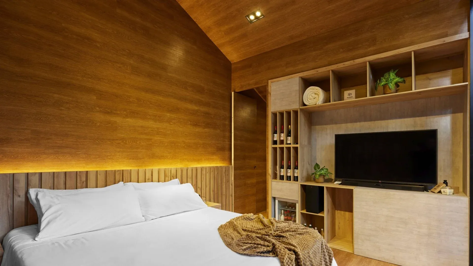 The units at the campground are equipped with a refrigerator, a minibar, a coffee maker, a hot tub, bathrobes, a flat-screen TV with streaming services, and a Blu-ray player. The private bathroom includes a shower. At the campground, the units come with bed linen and towels.
