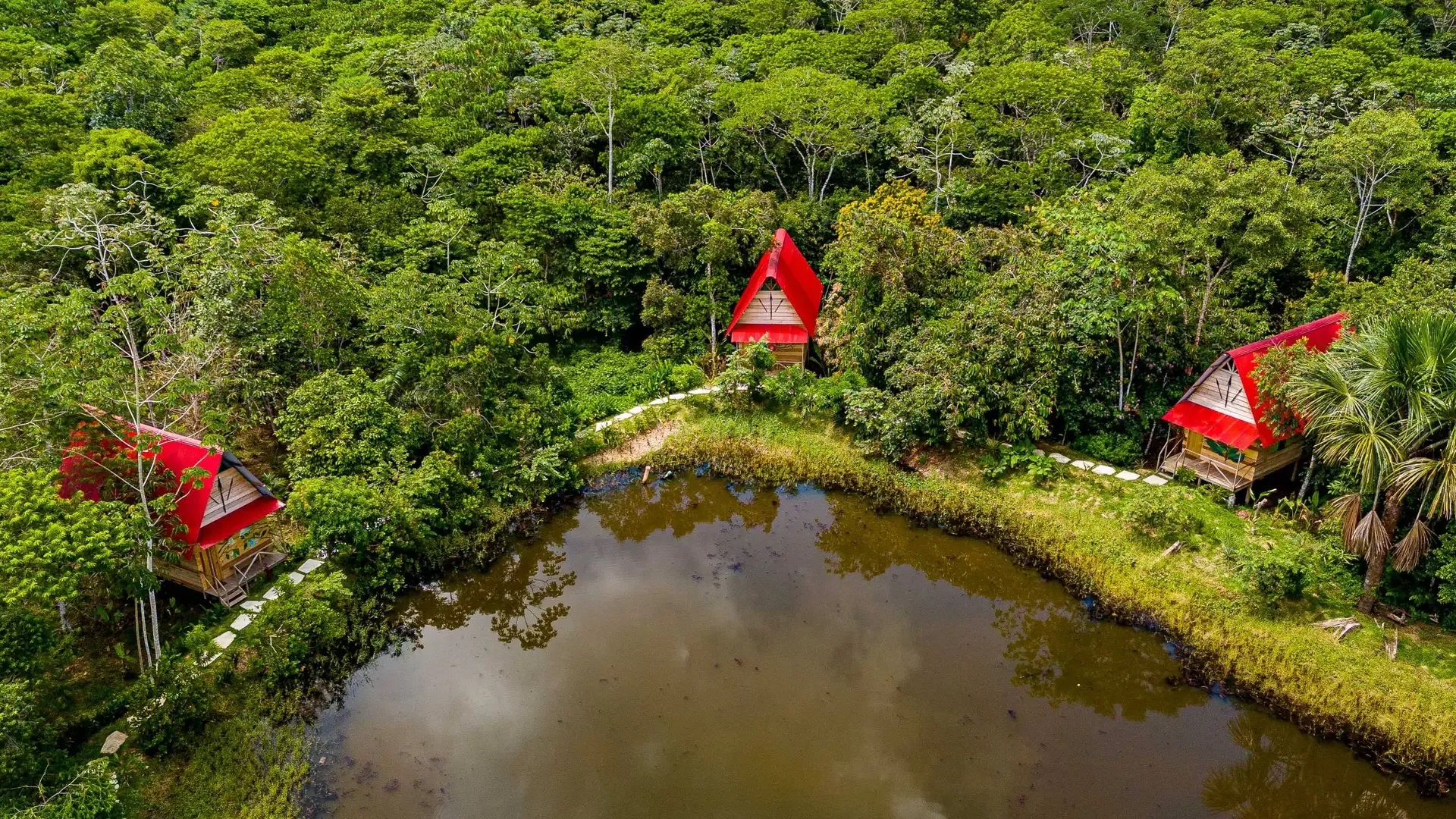 Nestled in the heart of the Peruvian Amazon, Pura Chata Ecolodge offers an immersive experience that harmoniously blends rustic charm with modern comfort. Crafted from local materials like wood and palm leaves, the lodge's architecture reflects traditional Amazonian design, featuring thatched roofs and open-air structures that invite the surrounding rainforest into every space. Guests can unwind in private bungalows equipped with hammocks and enjoy the serene ambiance of the jungle.