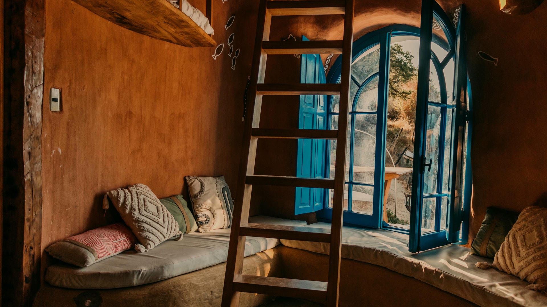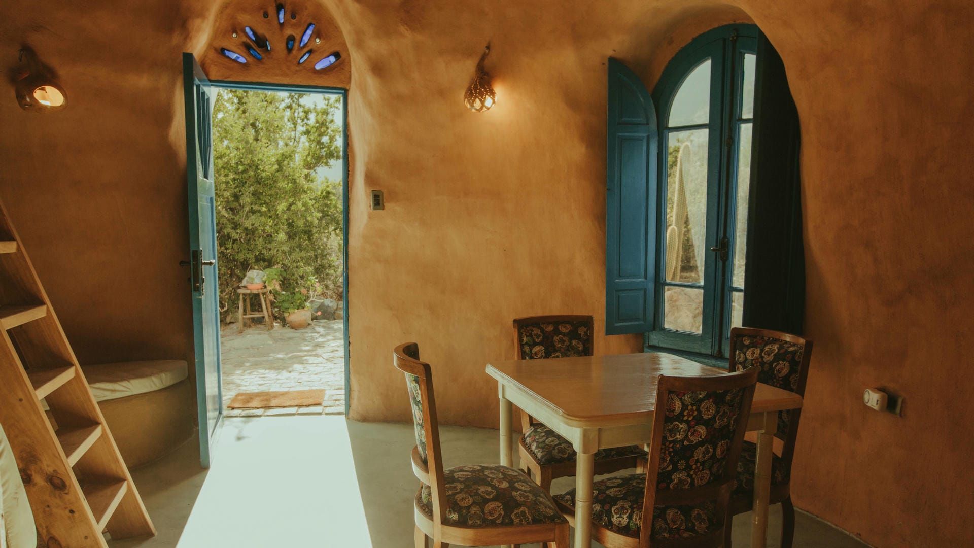 7 private hectares and 200 hectares of common use towards the mountains. The dome is fenced with direct access to the private path. Large patio with native species and regeneration. It has a size of 5 meters in diameter and 5.5 meters in height, ideal for couples, families or friends, up to 4 people. In the loft is the 2-plaza bed, and a living room with two beds/couch. It includes a kitchen and bathroom, all in natural materials, made by artisans with love. Dome material is super well (local clay, sand and lime/cement) which generates a warm space in winter and cool in summer. Fire extinguisher, earthquake, anti-radiations.