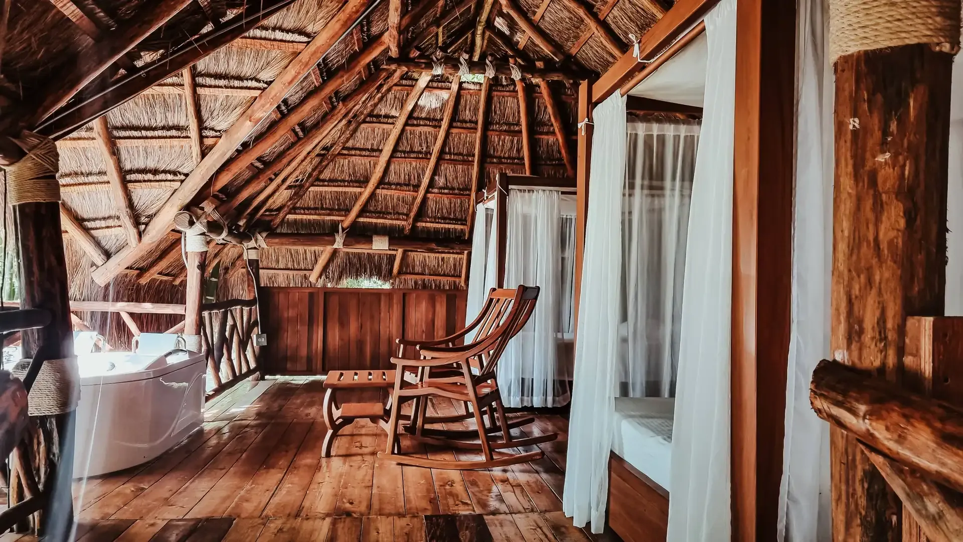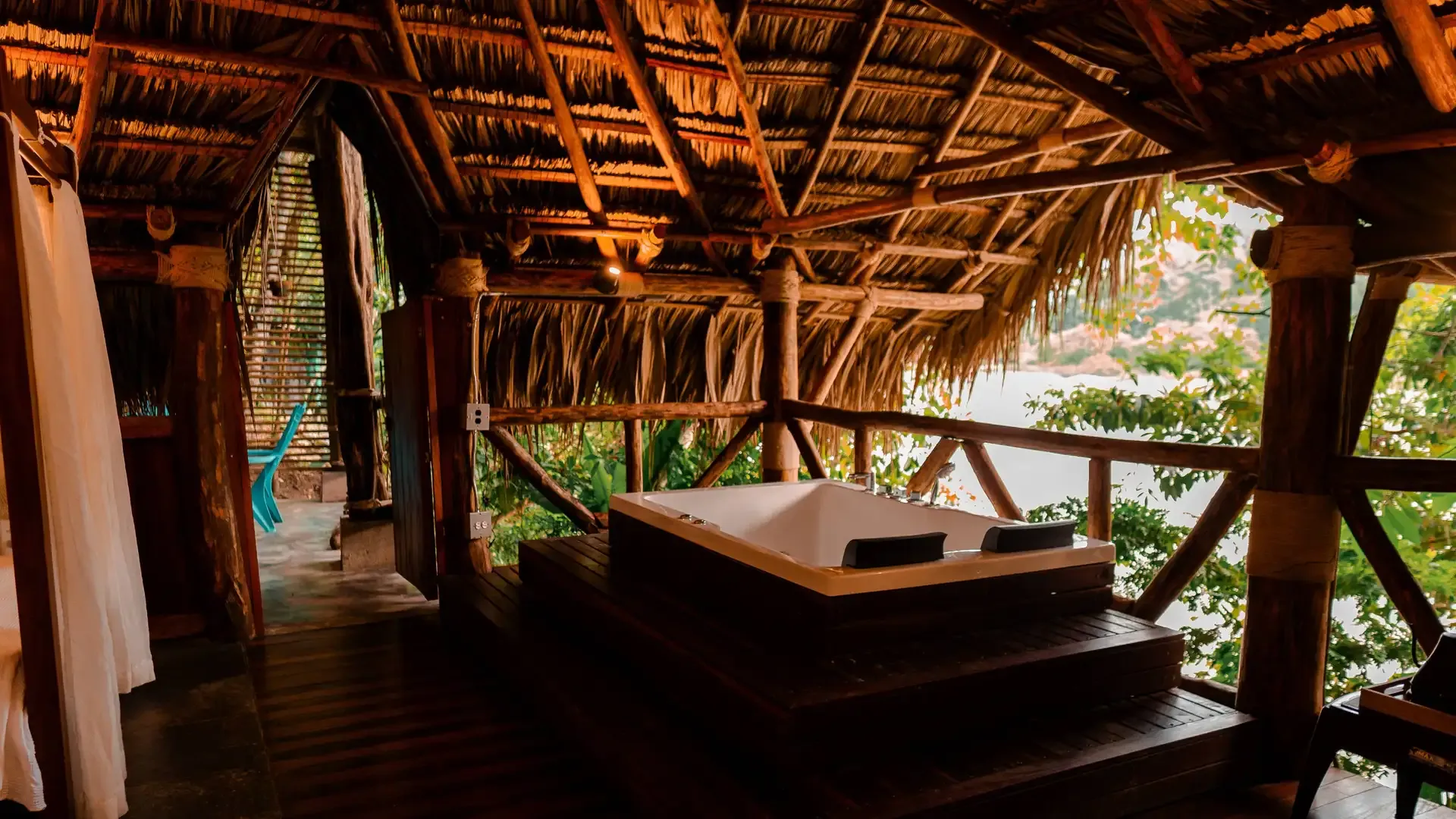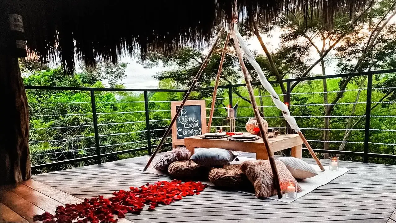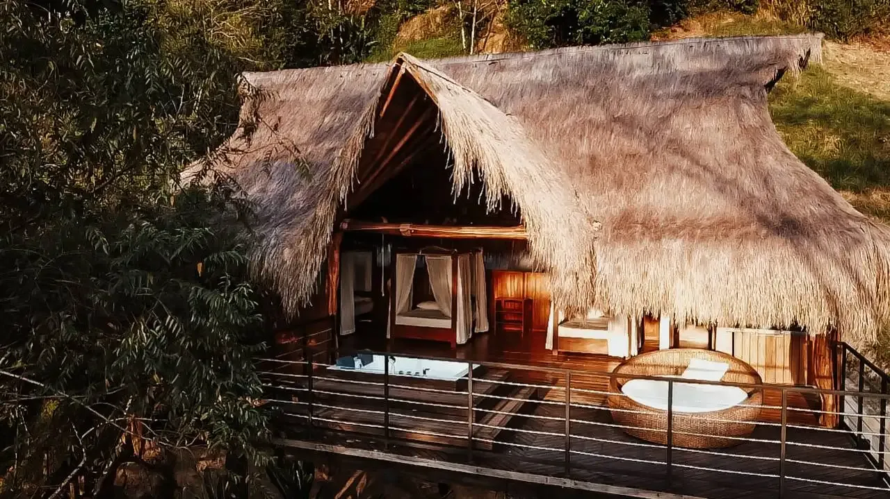 Open-air showers, hot water jacuzzis, mosquito-netted beds, minibars, and artisanal coffee stations offer comfort while staying close to nature. Some cabins have open designs, allowing guests to sleep under the stars. For those who prefer more traditional lodging, there is a fully enclosed, climate-controlled cabin.