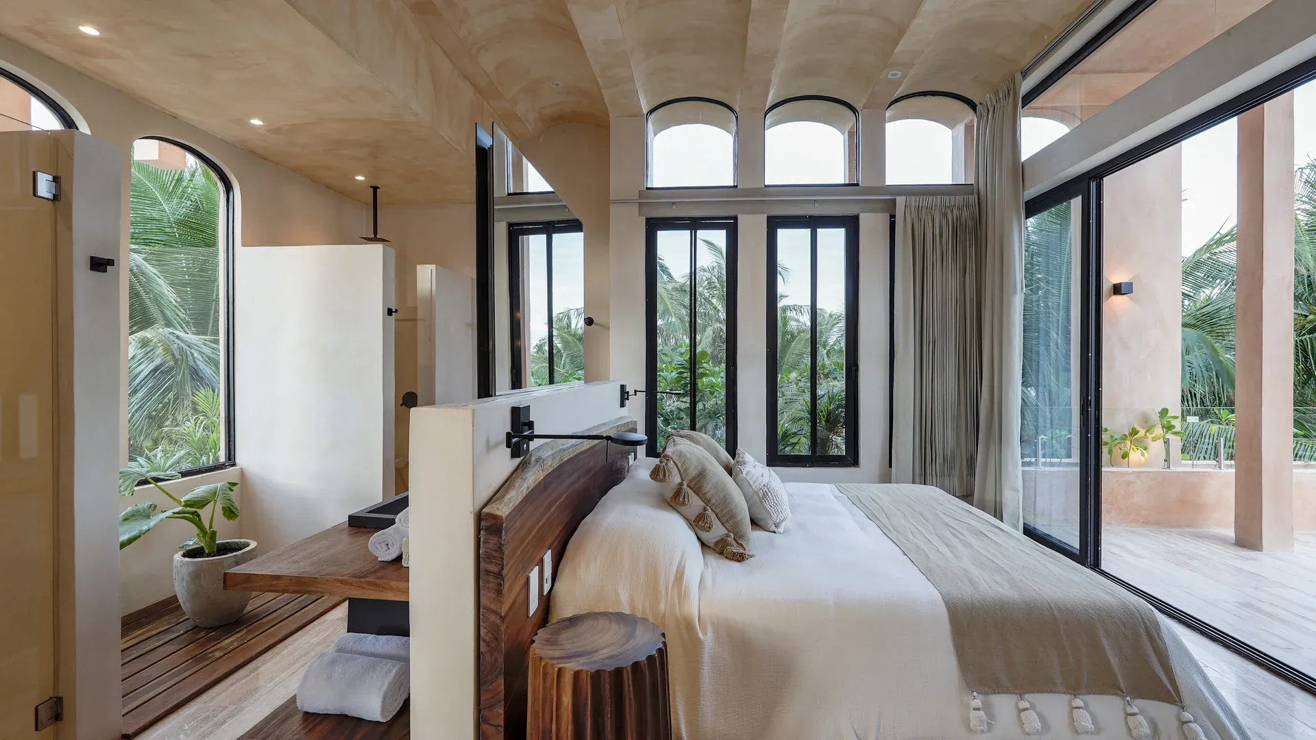 Romeo is a luxurious villa located in the hotel zone of Tulum, Mexico, designed to comfortably accommodate up to 10 guests on King Size beds. The property features 5 bedrooms, each with a private en-suite bathroom, plus an additional half bathroom, totaling 5.5 bathrooms.