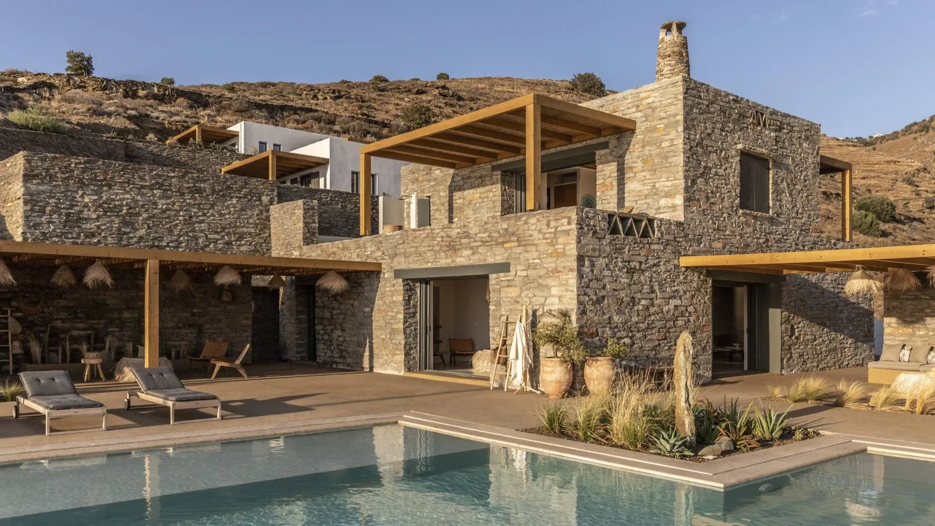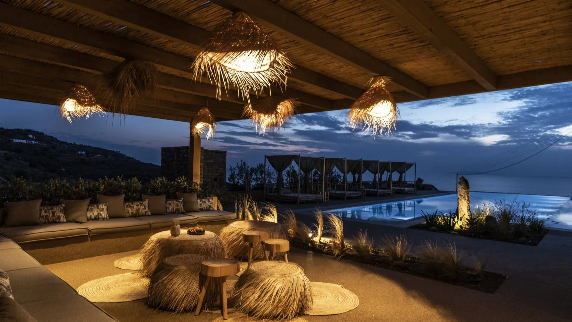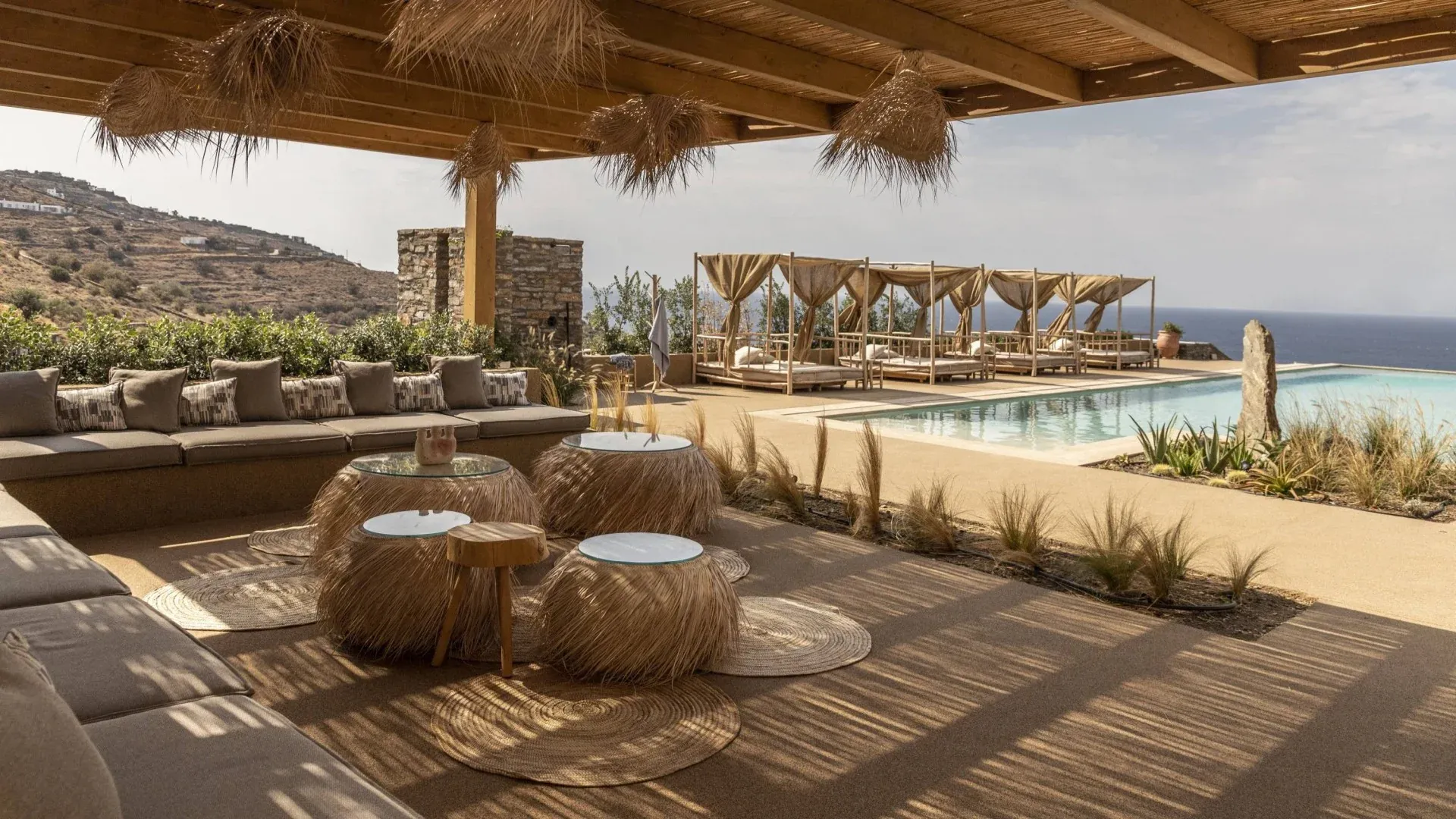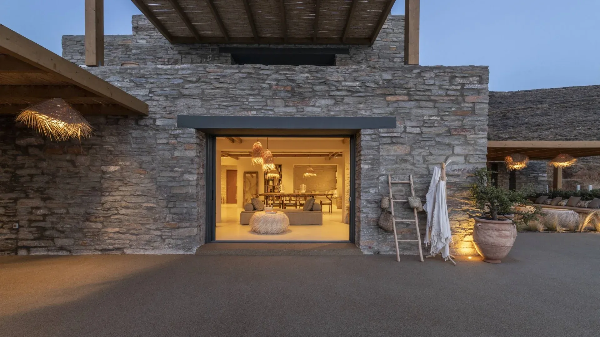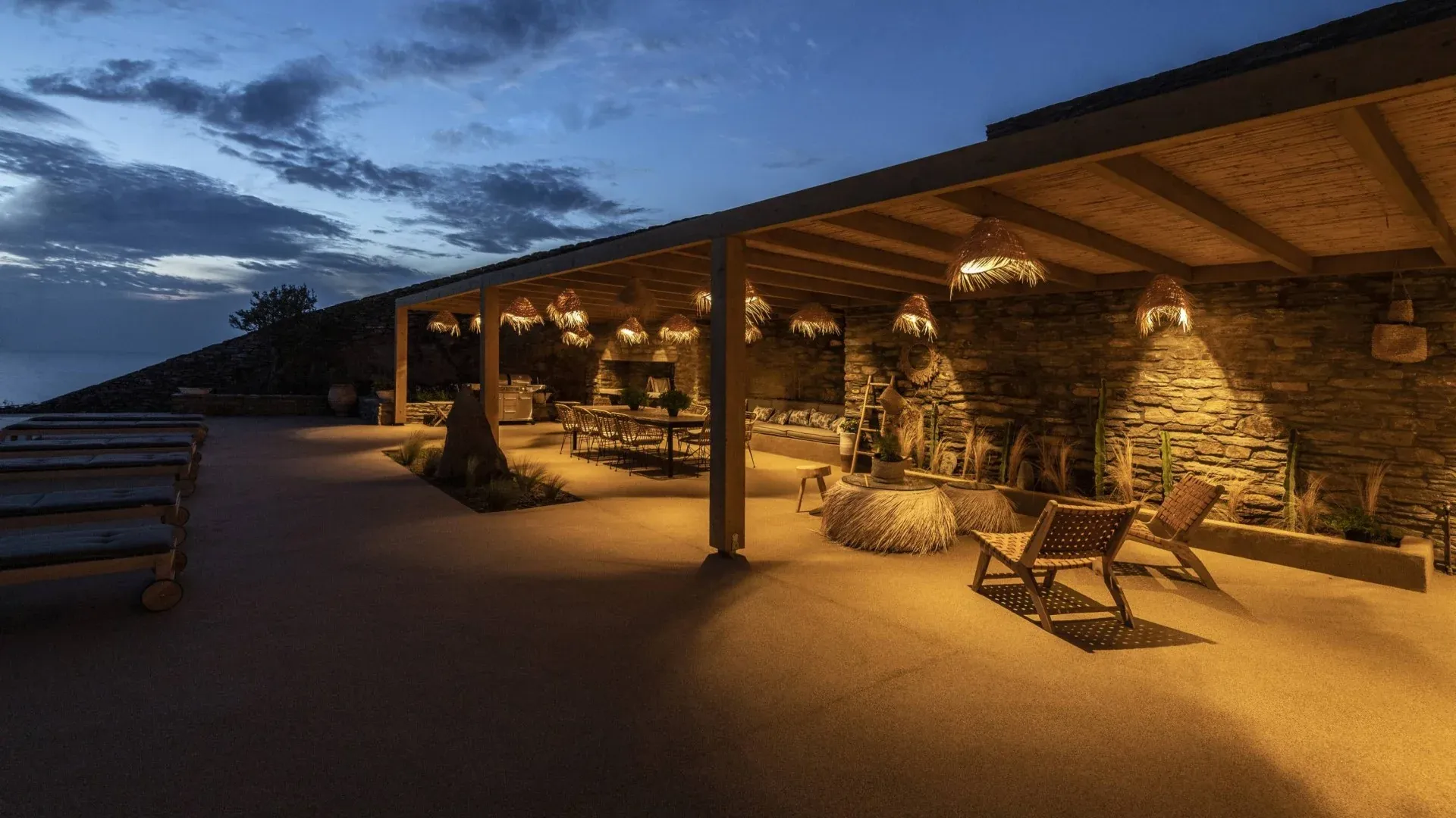The outdoor spaces at Villa Nāos are a sanctuary of serenity. The private pool beckons guests to cool off while soaking in the panoramic views. Lush gardens surround the property, providing a verdant backdrop for moments of peaceful contemplation.