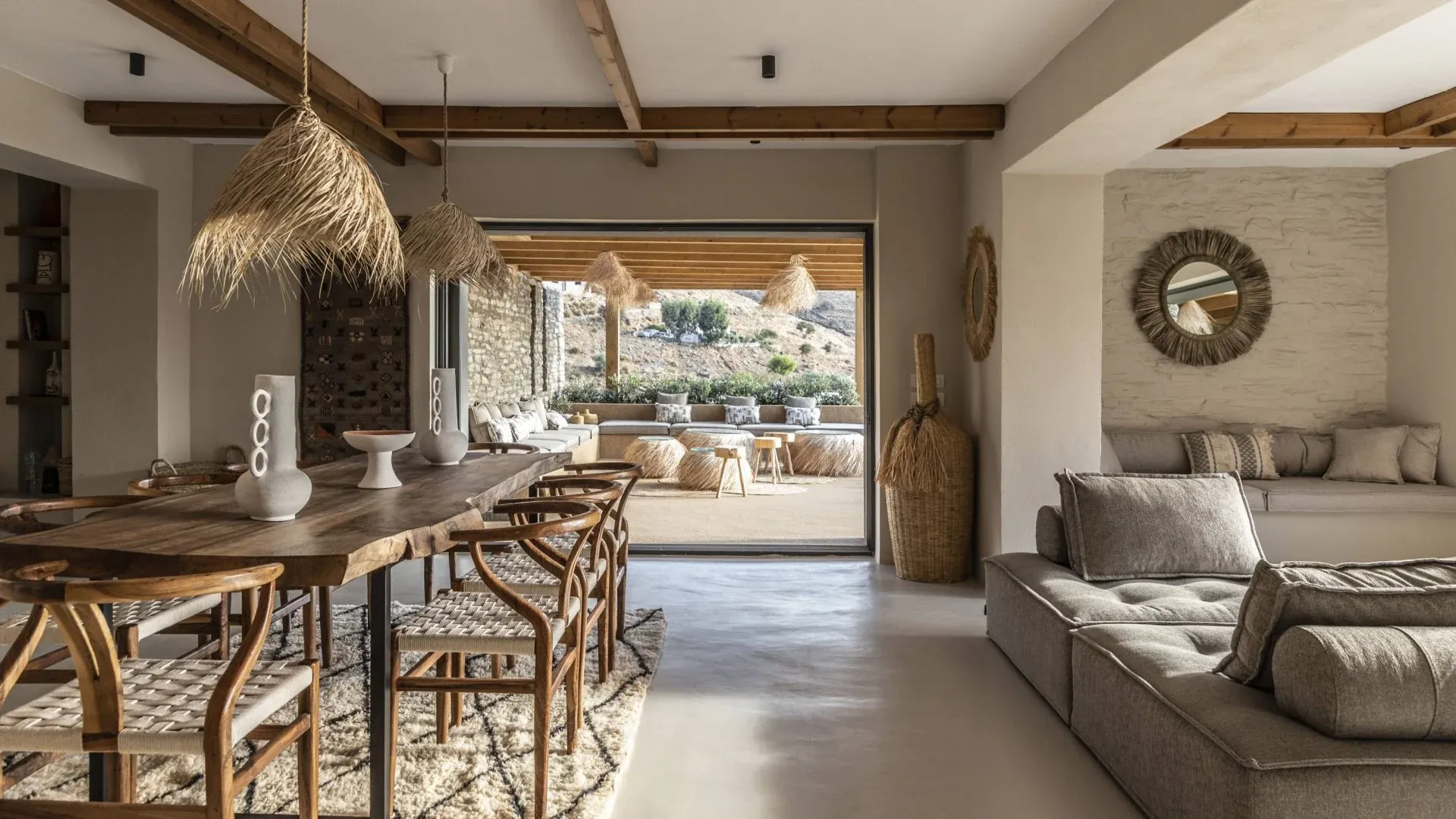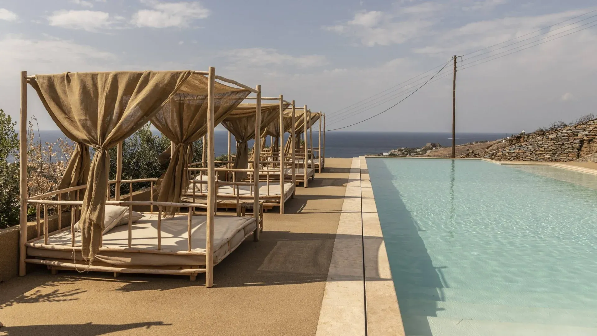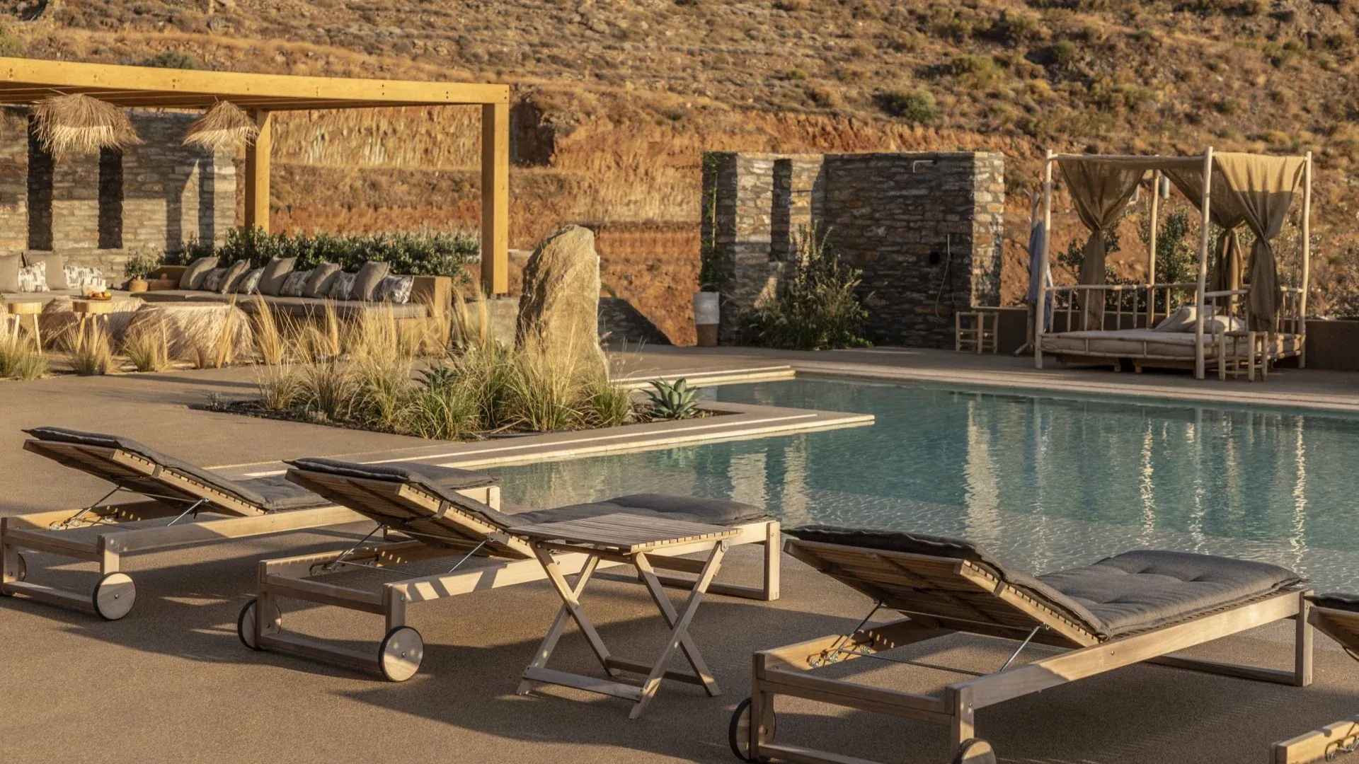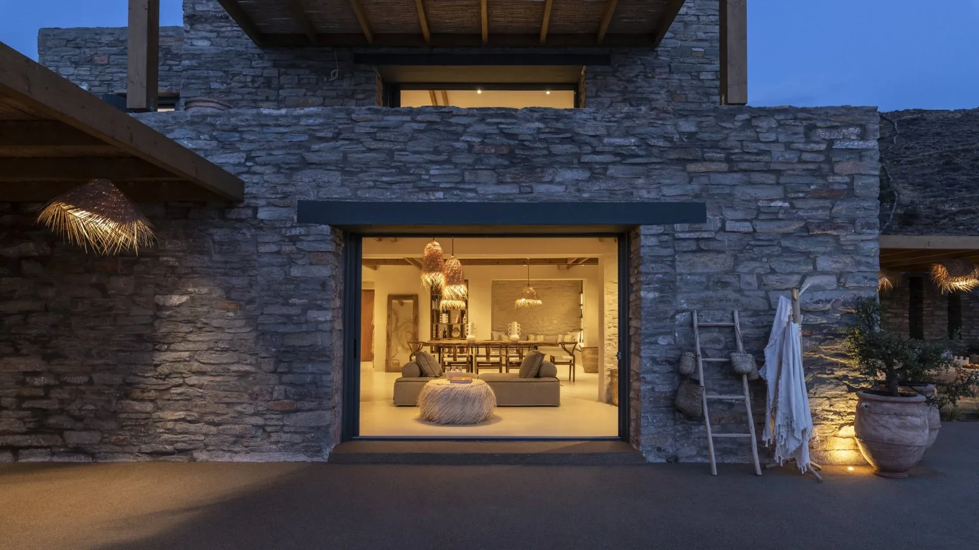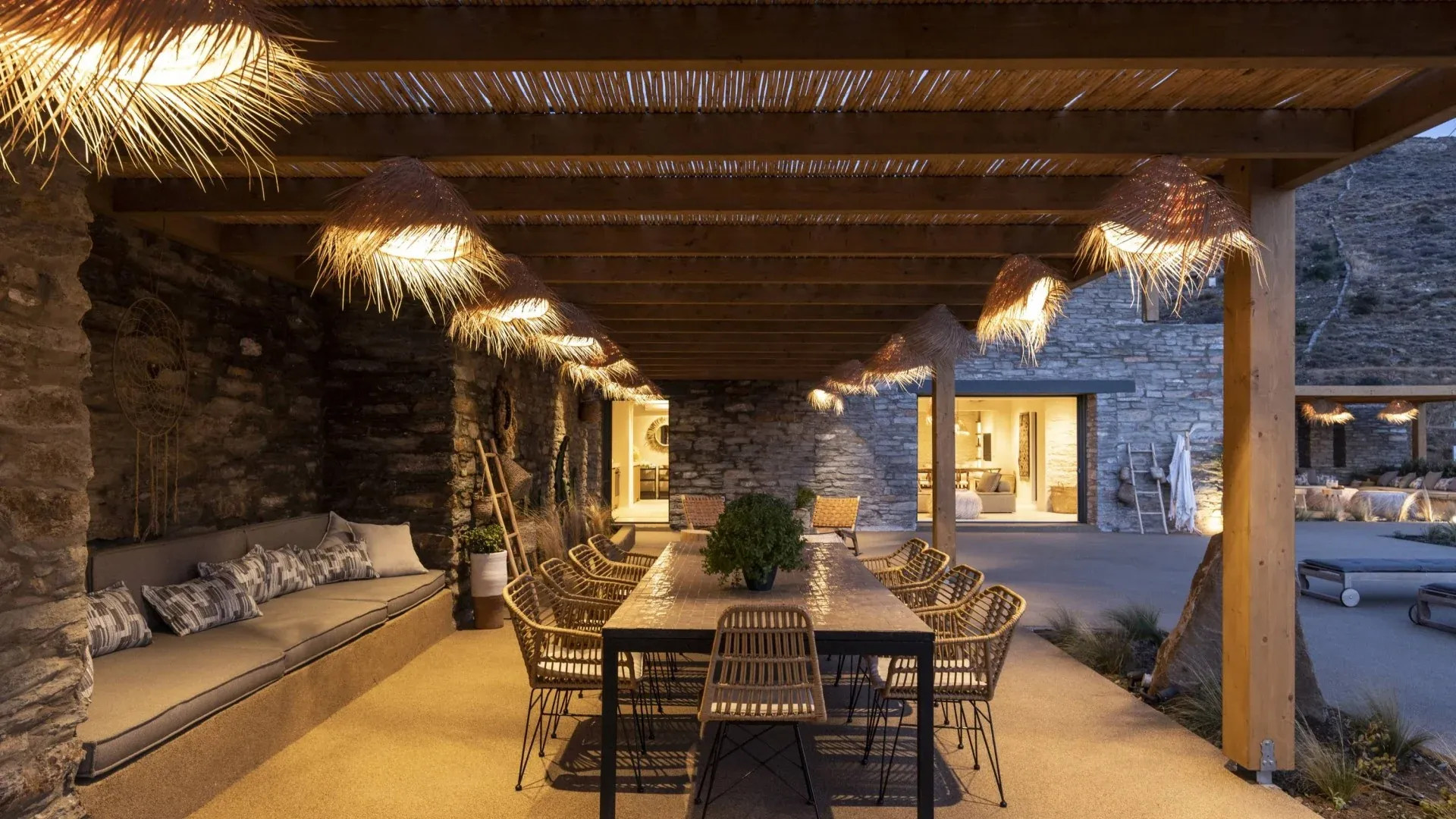 The outdoor spaces at Villa Nāos are a sanctuary of serenity. The private pool beckons guests to cool off while soaking in the panoramic views. Lush gardens surround the property, providing a verdant backdrop for moments of peaceful contemplation.