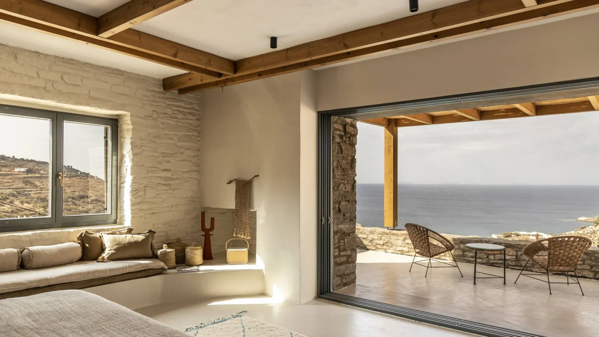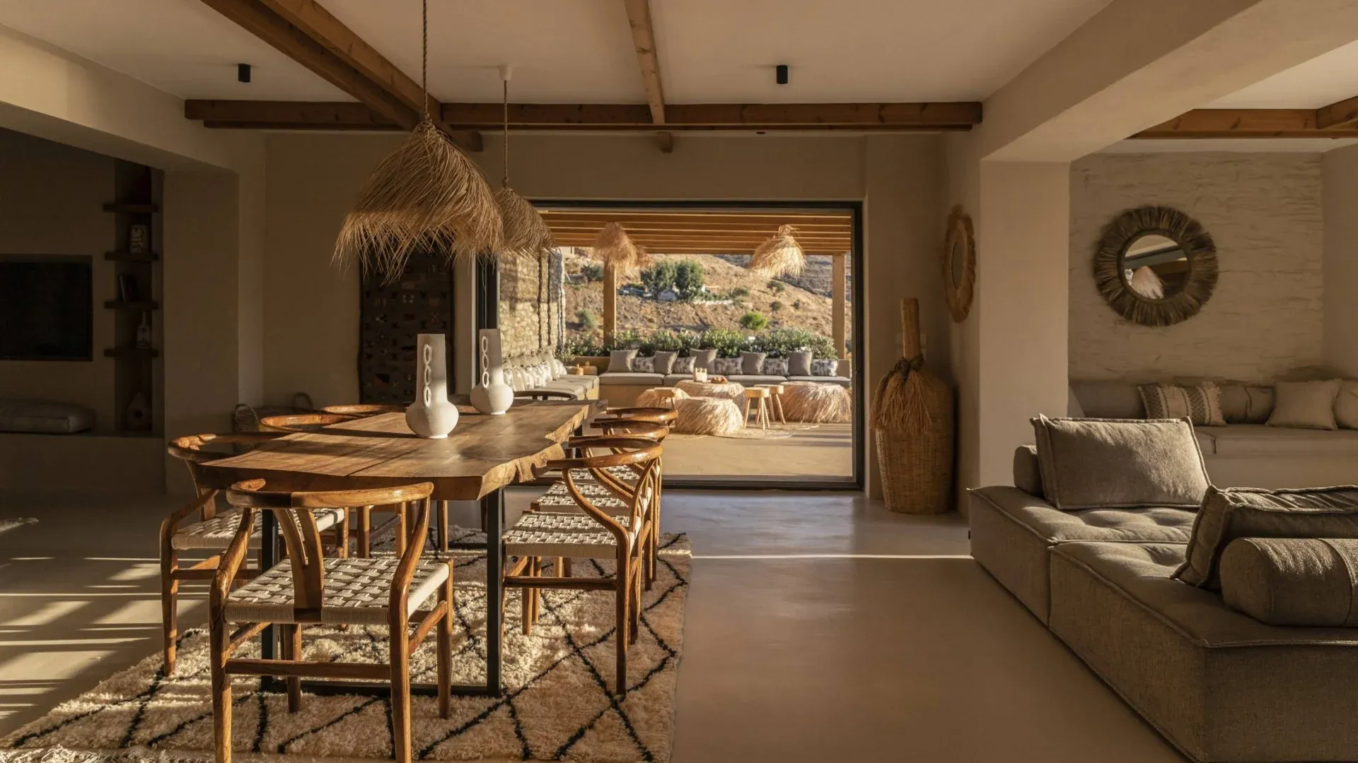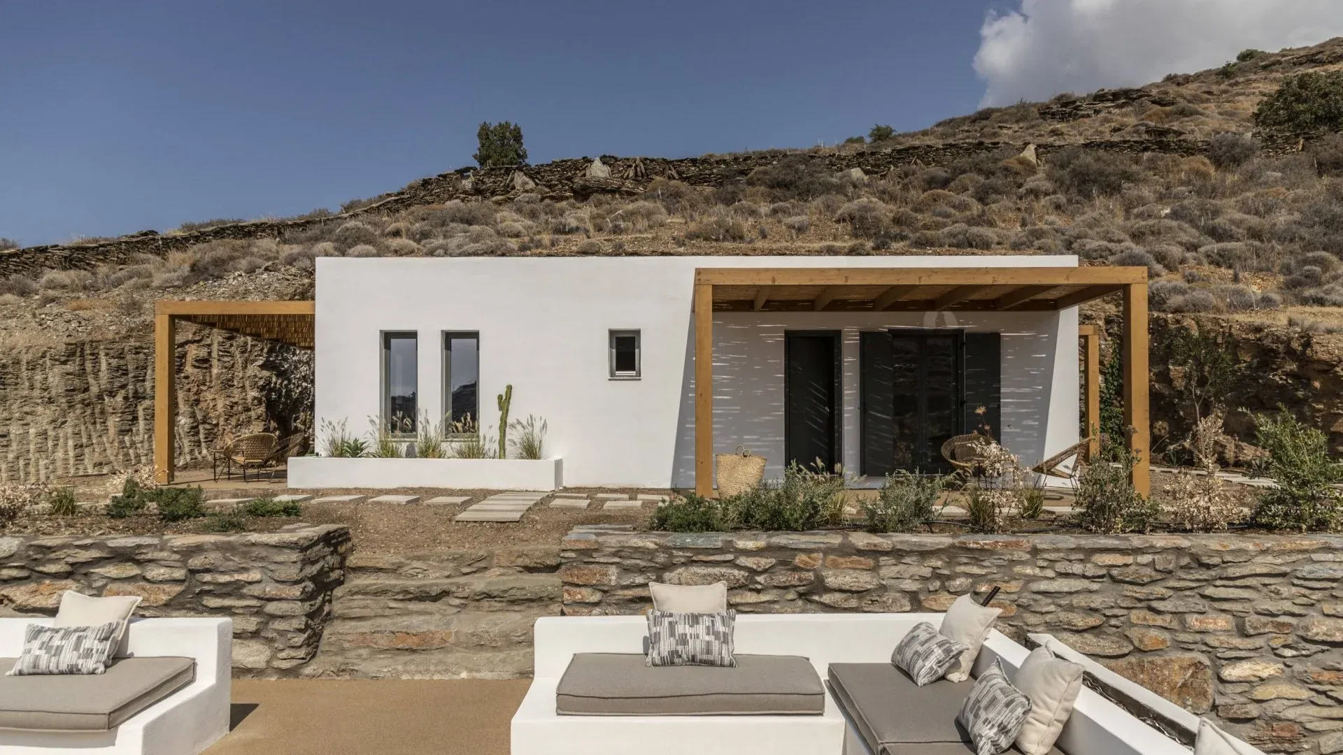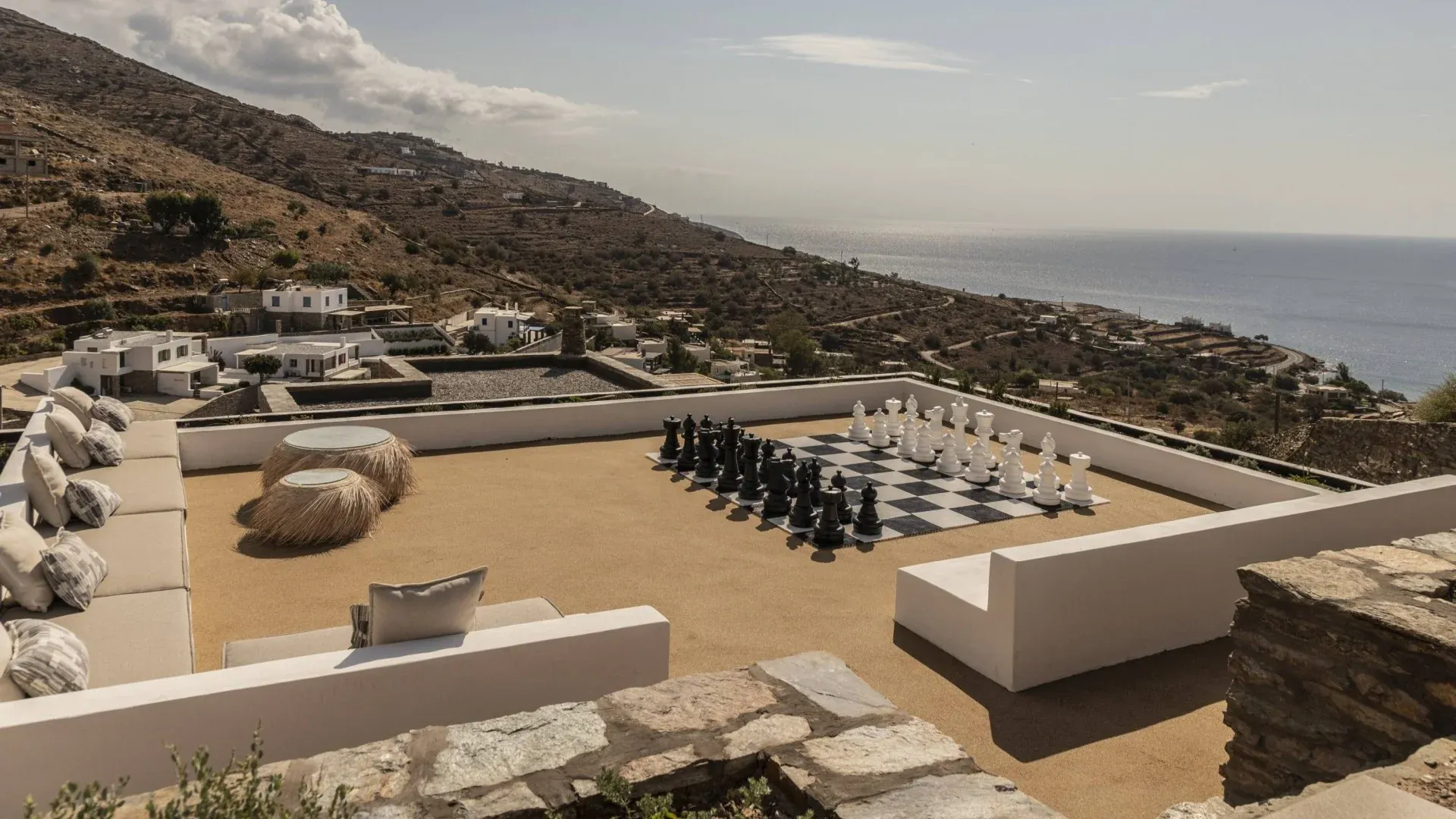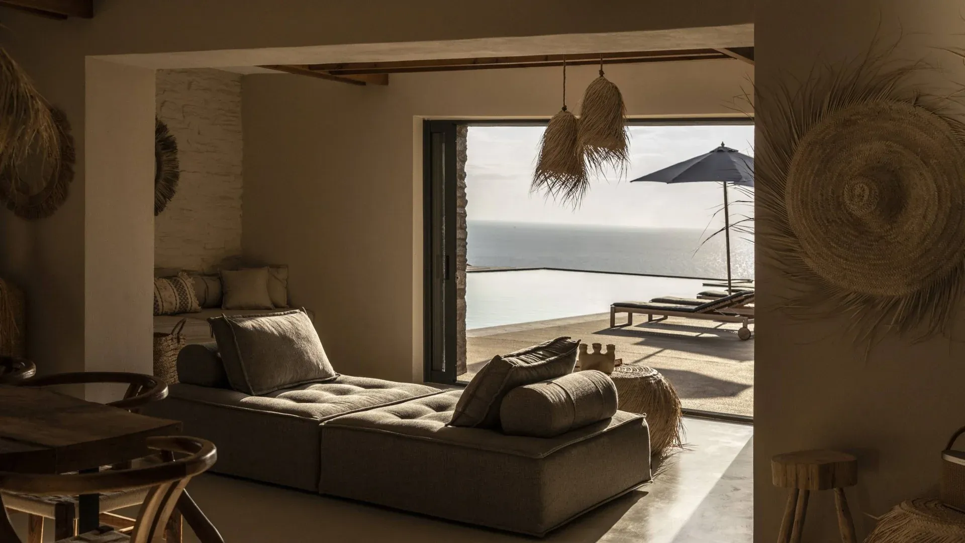 The outdoor spaces at Villa Nāos are a sanctuary of serenity. The private pool beckons guests to cool off while soaking in the panoramic views. Lush gardens surround the property, providing a verdant backdrop for moments of peaceful contemplation.