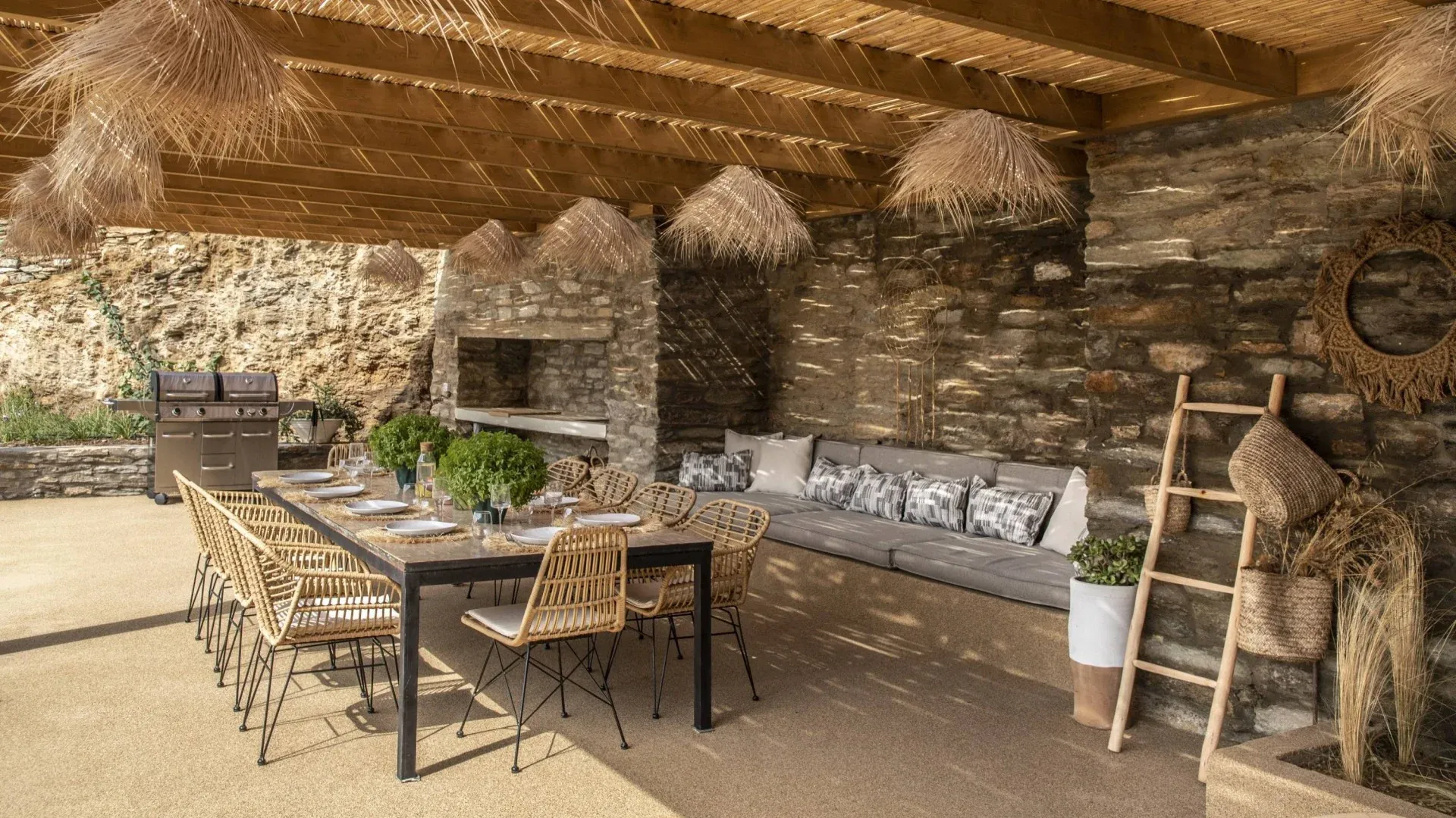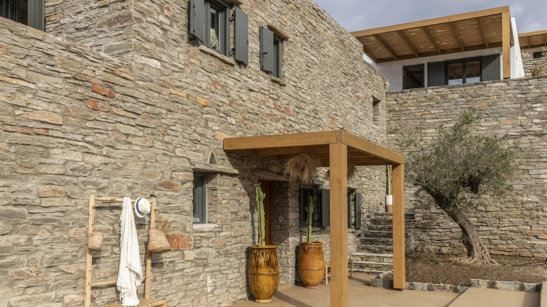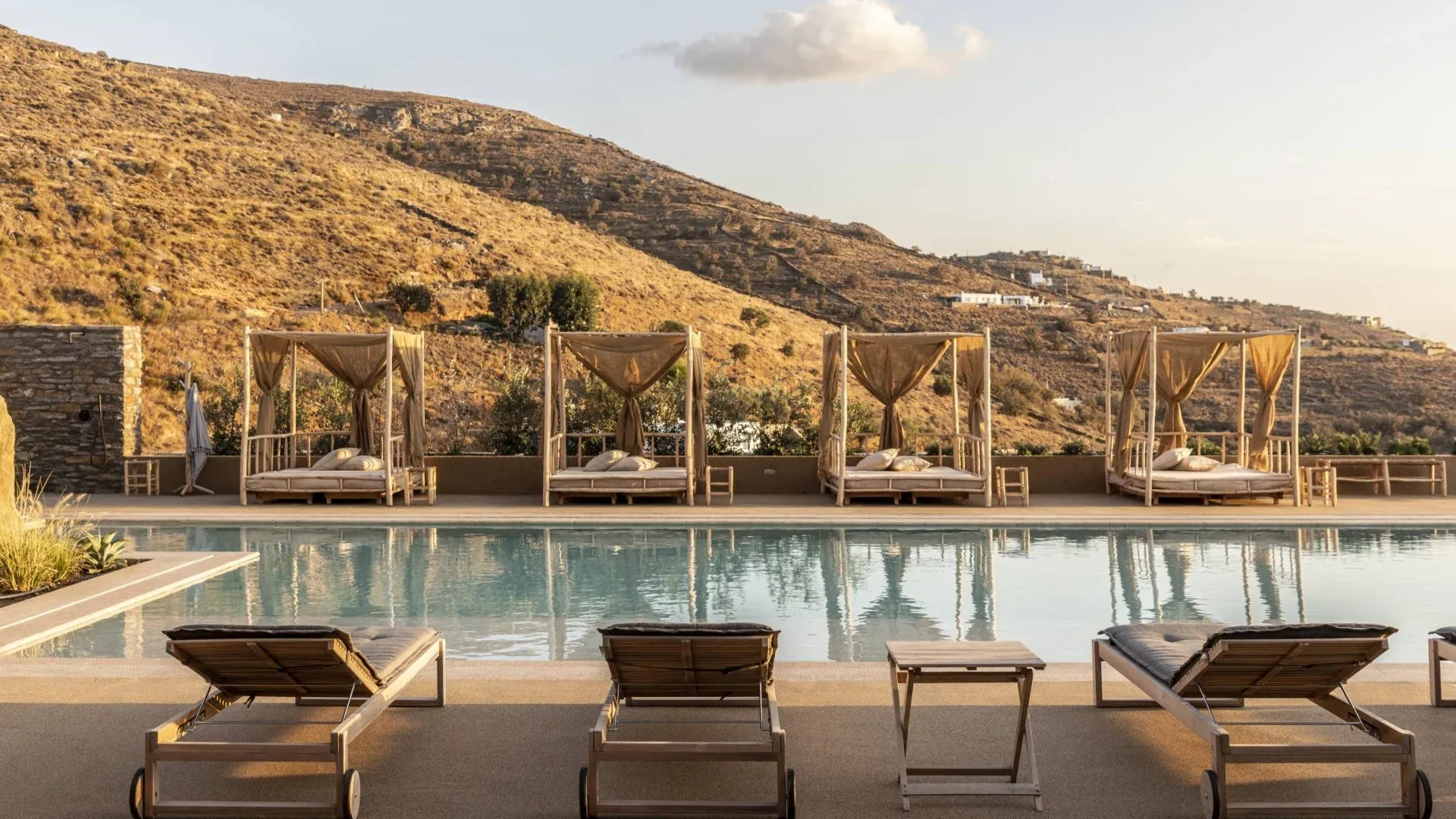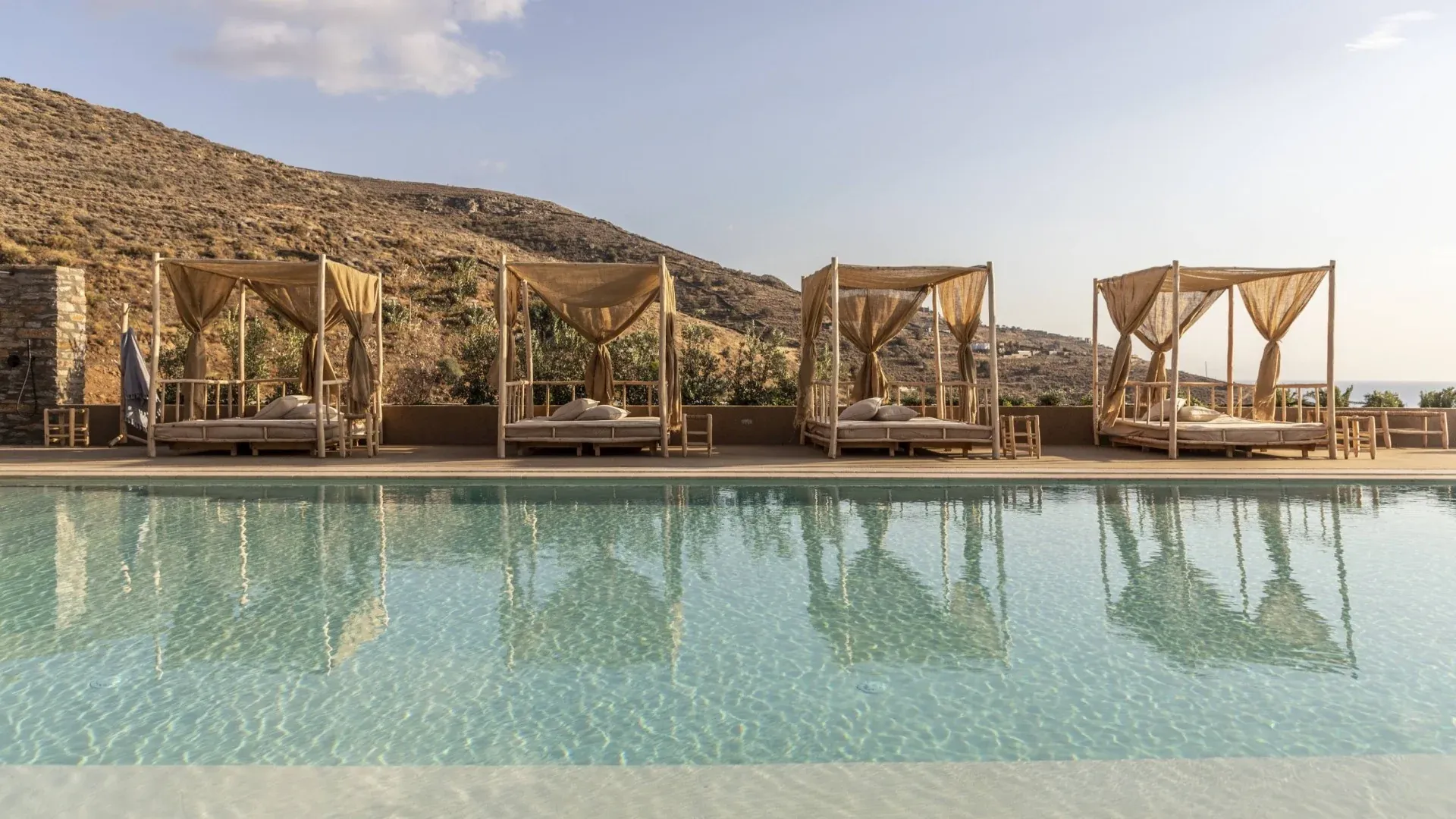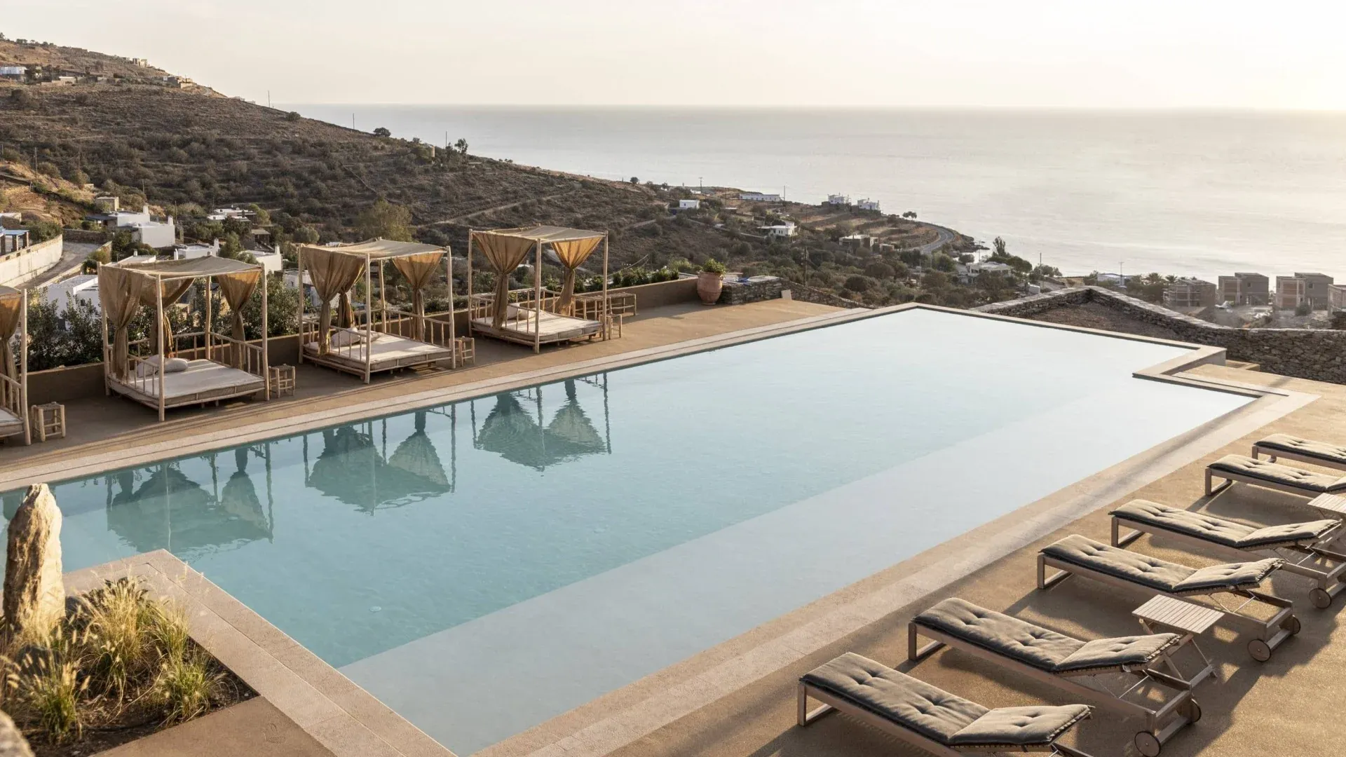 The outdoor spaces at Villa Nāos are a sanctuary of serenity. The private pool beckons guests to cool off while soaking in the panoramic views. Lush gardens surround the property, providing a verdant backdrop for moments of peaceful contemplation.