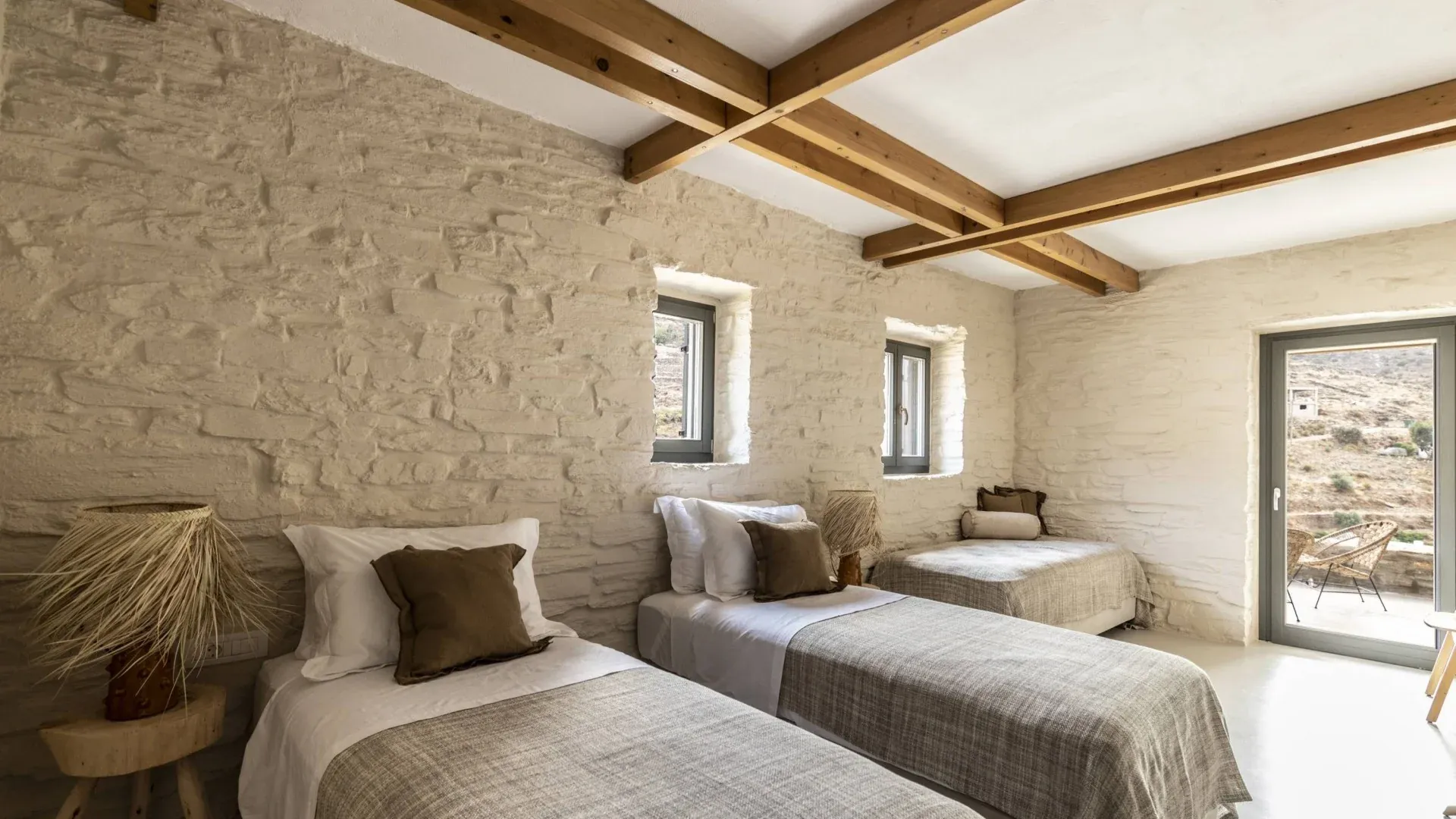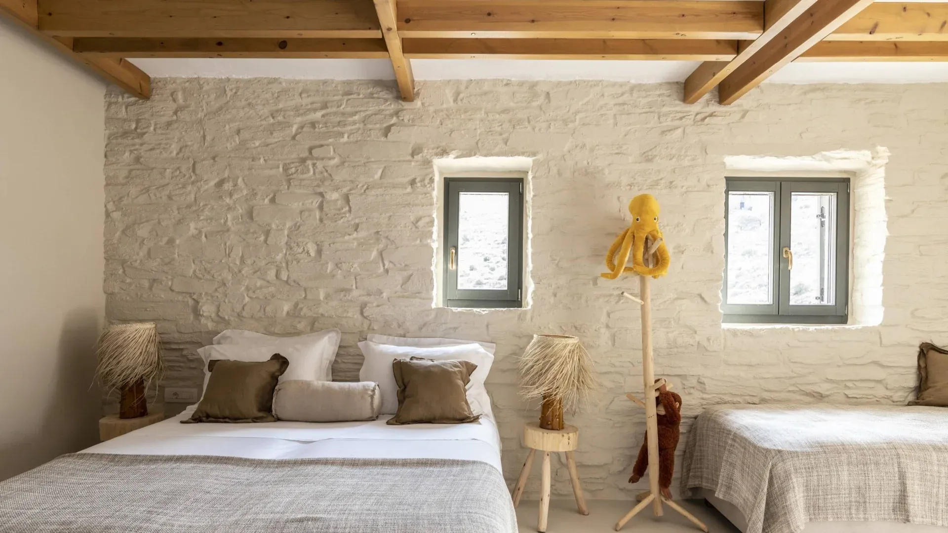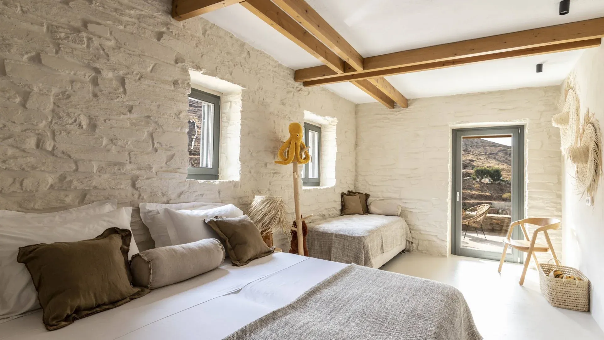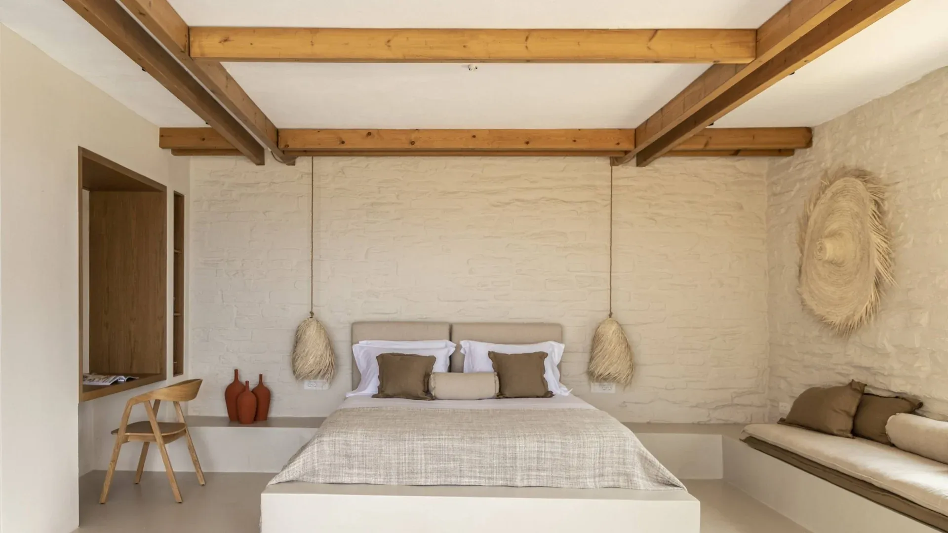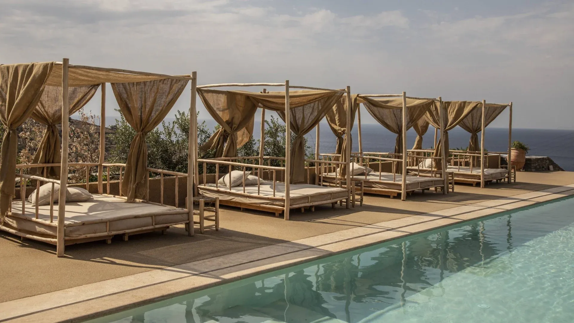 The outdoor spaces at Villa Nāos are a sanctuary of serenity. The private pool beckons guests to cool off while soaking in the panoramic views. Lush gardens surround the property, providing a verdant backdrop for moments of peaceful contemplation.