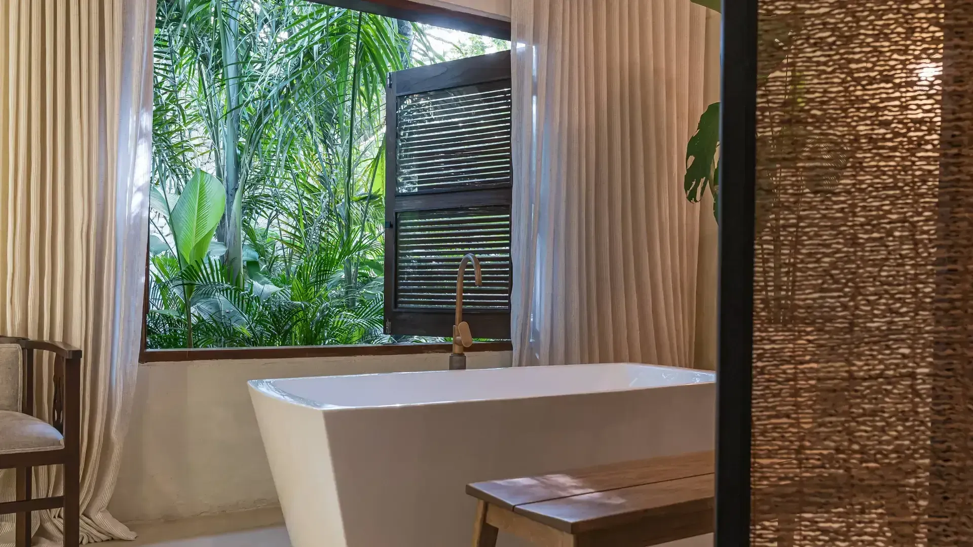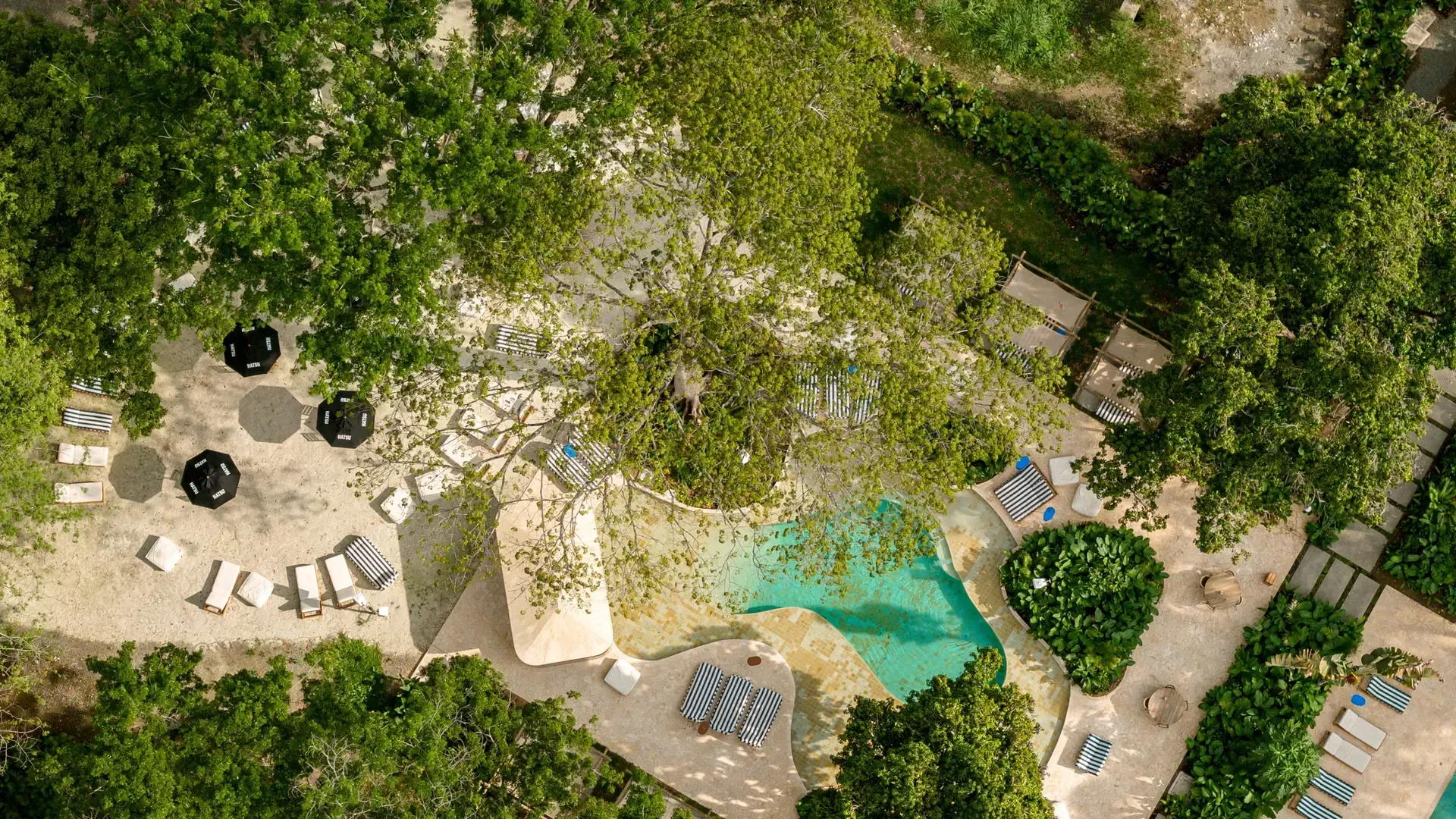 La arquitectura se integra armoniosamente con la selva circundante, creando un ambiente sereno ideal para la relajación y la celebración. El hotel enfatiza su compromiso con la sostenibilidad y la cultura local, garantizando una experiencia auténtica.