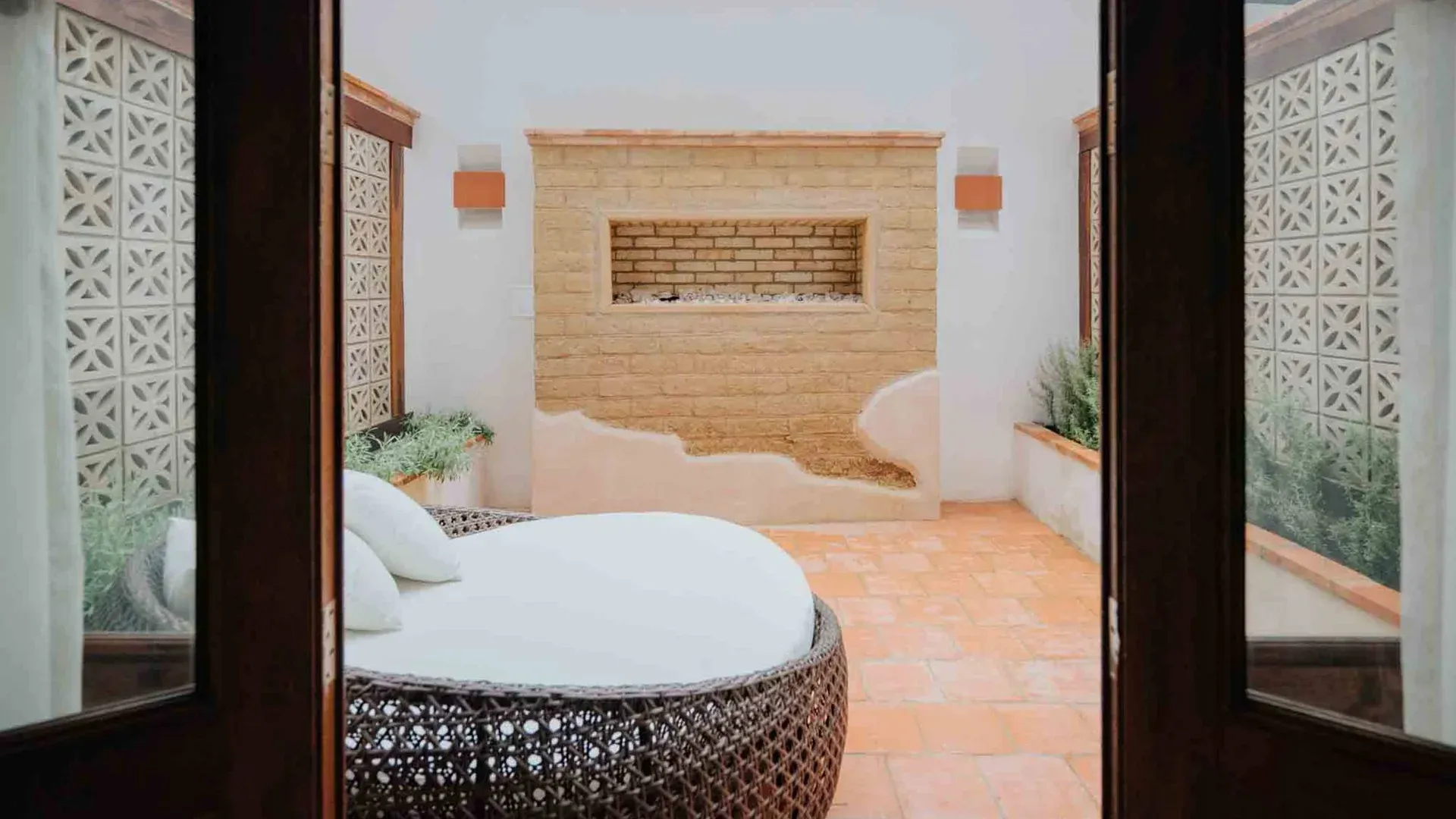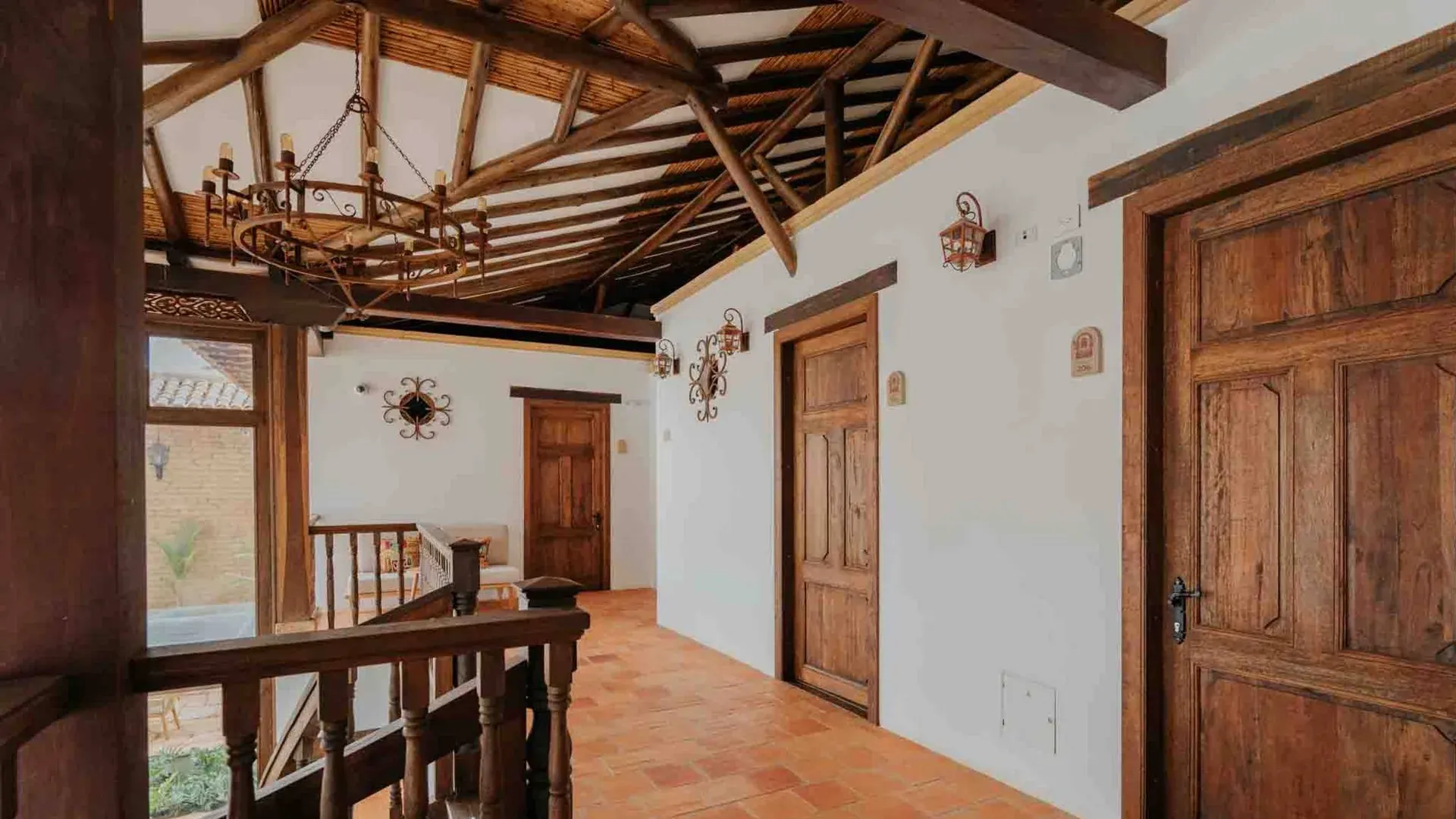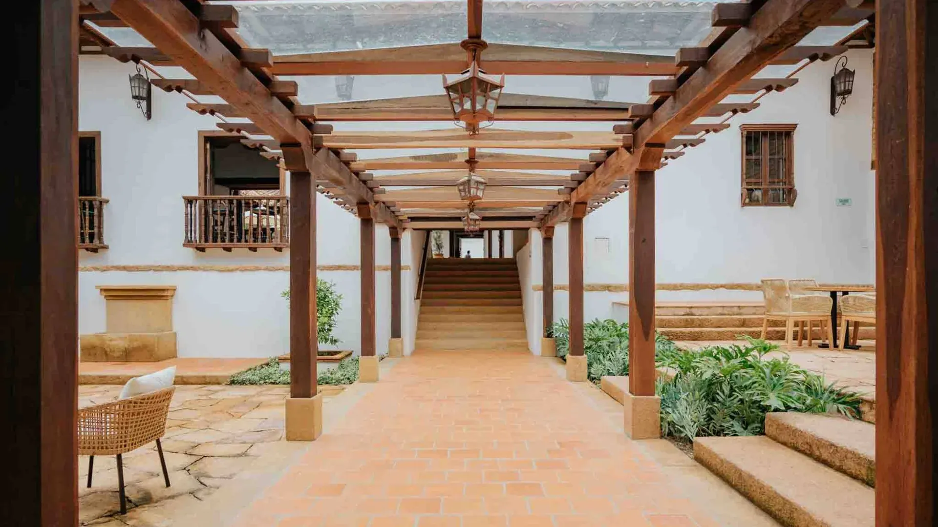 El Hotel Casa Alcestre exhibe una arquitectura colonial, caracterizada por su construcción robusta, paredes encaladas y techos de tejas de arcilla. Este estilo, predominante durante el período colonial español, enfatiza la simetría y la proporción. El diseño del hotel incluye amplios patios, balcones de madera y detalles de hierro forjado, todos dispuestos de manera armoniosa para crear una atmósfera cohesiva y acogedora. El uso de materiales locales y técnicas tradicionales de construcción no solo rinde homenaje al pasado, sino que también asegura una conexión genuina con el paisaje cultural de Villa de Leyva.