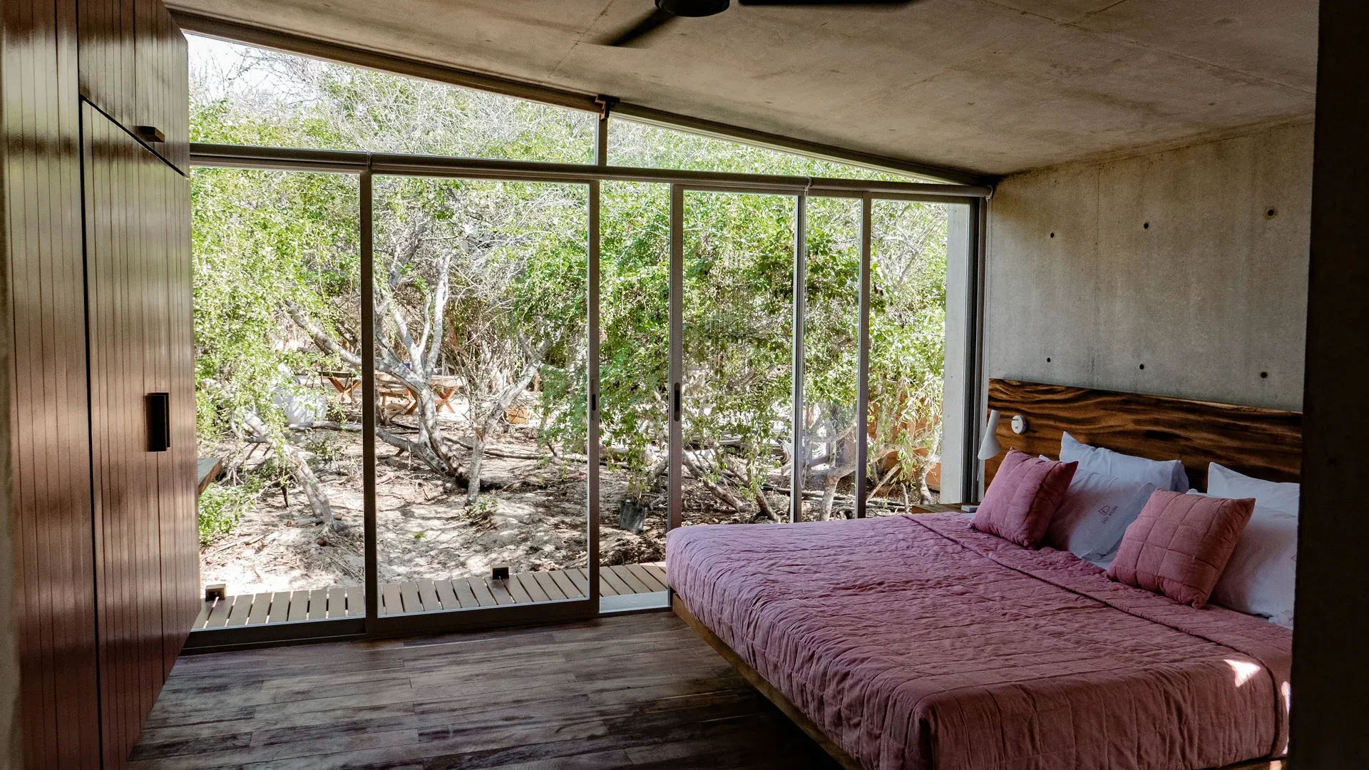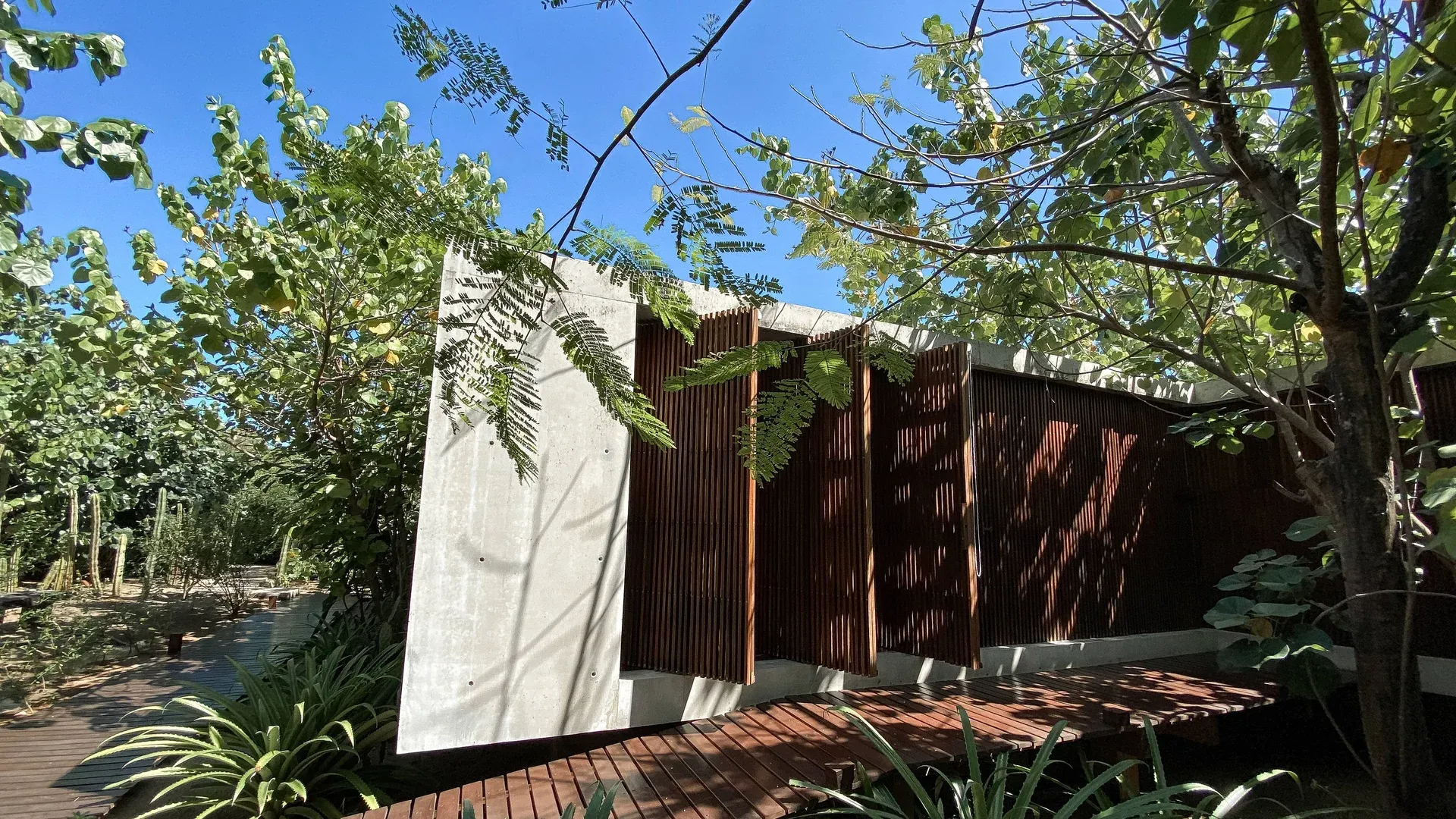 Su diseño vanguardista combina la geometría limpia del concreto con materiales naturales y cálidos que permiten que se mezcle con el entorno natural. Creada por el arquitecto Alberto Calleja, ganador de la medalla de plata en la Primera Bienal de Arquitectura Oaxaqueña 2019 por su proyecto Casa Altanera, que fue la primera de tres casas "hermanas" que conforman este proyecto. Bacana invita a una comunión serena con la naturaleza, orientada por su diseño.