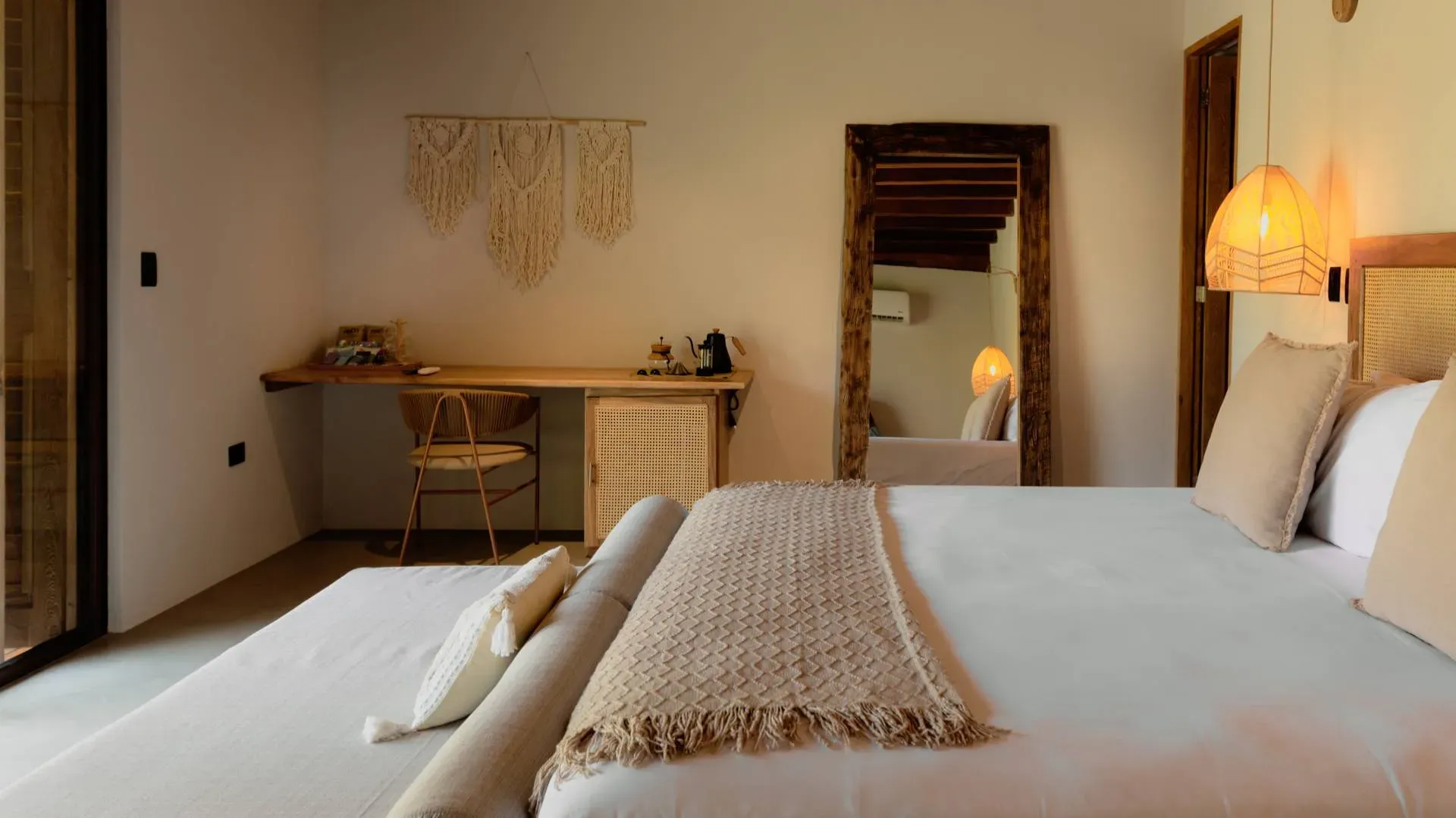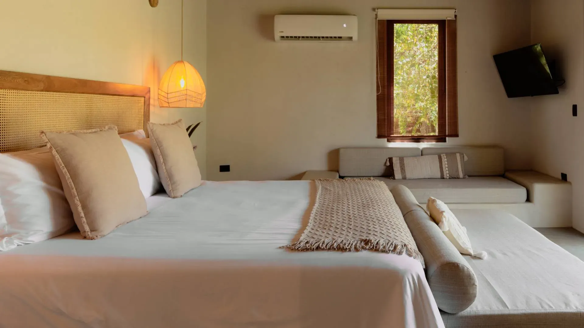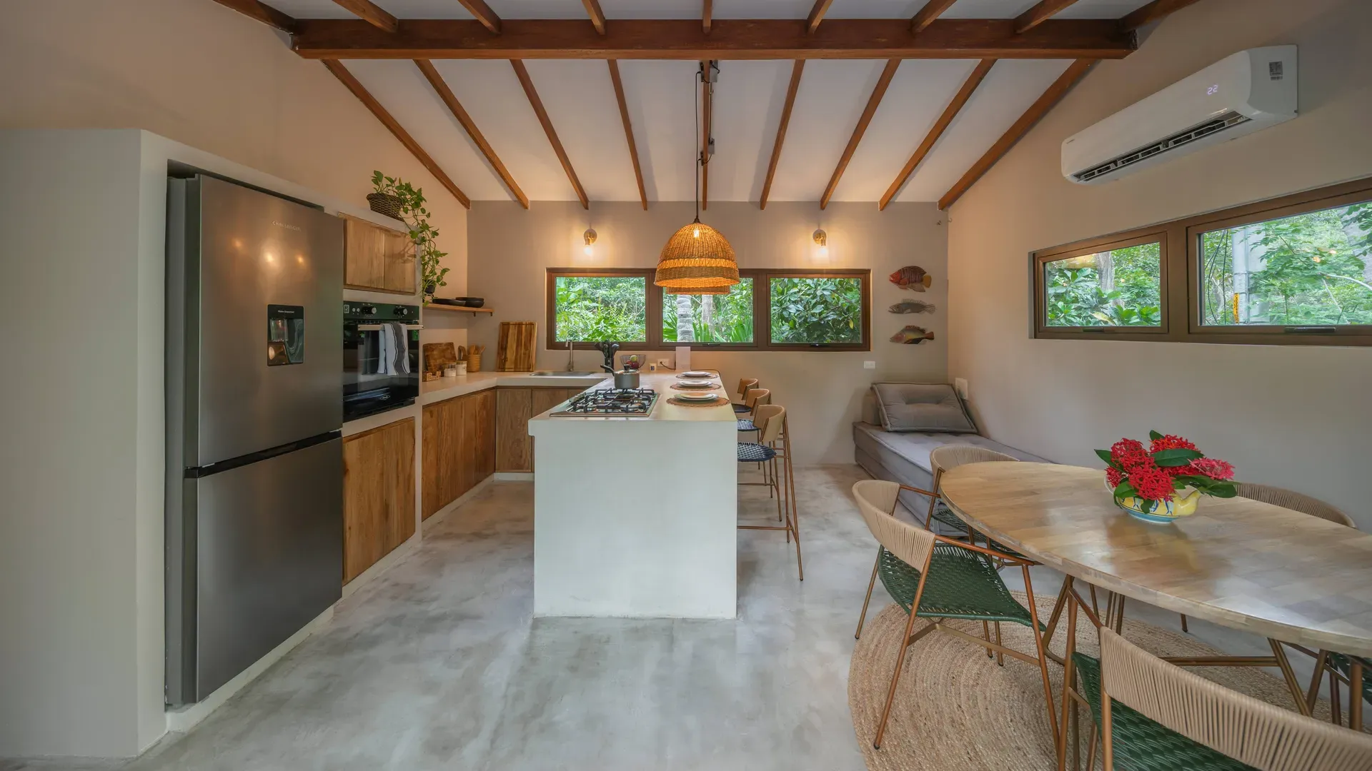 Icaco Refugio de Playa es un santuario sereno ubicado entre la exuberante Sierra Nevada y el brillante Mar Caribe en Guachaca, Colombia. Este retiro aislado frente al mar ofrece a los huéspedes una escapada íntima donde los ritmos del océano y las melodías de la fauna local crean una sinfonía natural. Los huéspedes pueden sumergirse en una armoniosa combinación de confort y naturaleza, disfrutando de espacios amplios diseñados para la relajación, la reflexión y la conexión. La propiedad incluye una villa que alberga a cuatro huéspedes y dos suites, cada una también diseñada para cuatro, lo que la hace perfecta para familias o pequeños grupos que buscan privacidad y tranquilidad.