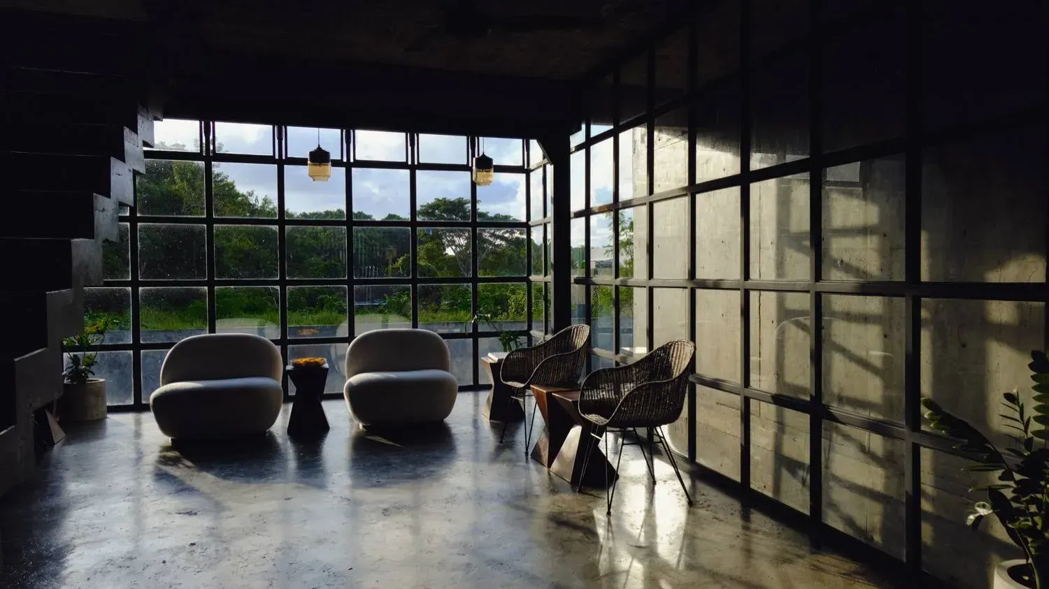 Kasia Ungasan es un ejemplo impactante del Brutalismo Tropical, una corriente que combina la fuerza y crudeza del hormigón expuesto con un diseño sensible al clima y al paisaje. Según el perfil publicado en ArchDaily, el edificio de tres plantas se integra parcialmente en la pendiente del terreno, lo que permite que los niveles inferiores se fundan con el entorno, favoreciendo tanto la integración visual como la regulación térmica. Líneas puras, una paleta de materiales honestos, ventanales de altura completa y una fluida conexión entre interior y exterior caracterizan su arquitectura.