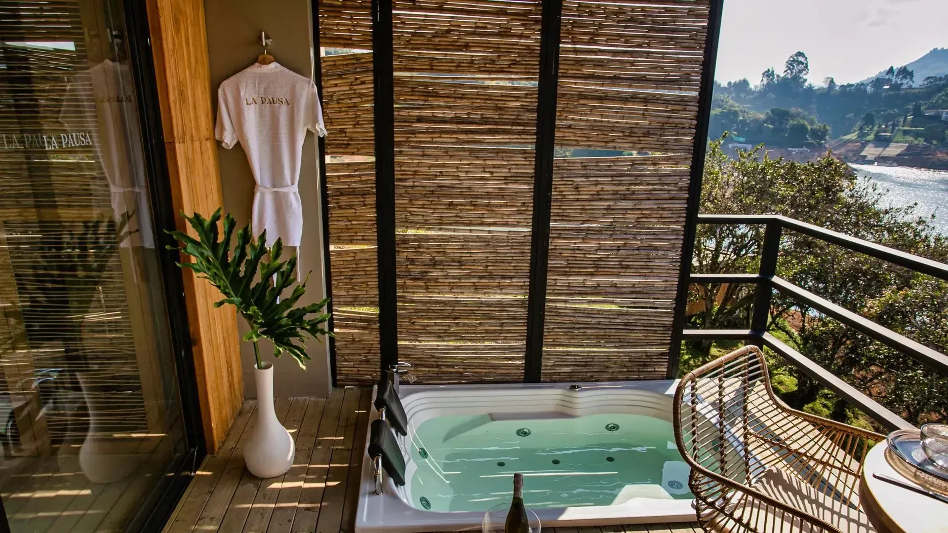La Pausa Hotelbistró se eleva con gracia a orillas del embalse Peñol-Guatapé, un santuario sereno donde el tiempo parece detenerse. Cada cabaña se percibe como un poema visual: patios privados, jacuzzis al aire libre, chimeneas crepitantes bajo las estrellas y vistas amplias al lago que invitan a la contemplación. La hospitalidad aquí no es un servicio, sino un arte, tejido en cada detalle: suaves lencerías, amenidades refinadas, limpieza diaria y servicio a la habitación las 24 horas. Todo converge hacia una filosofía única: vivir en modo avión, desconectarse de la prisa y reconectarse con lo verdaderamente esencial.