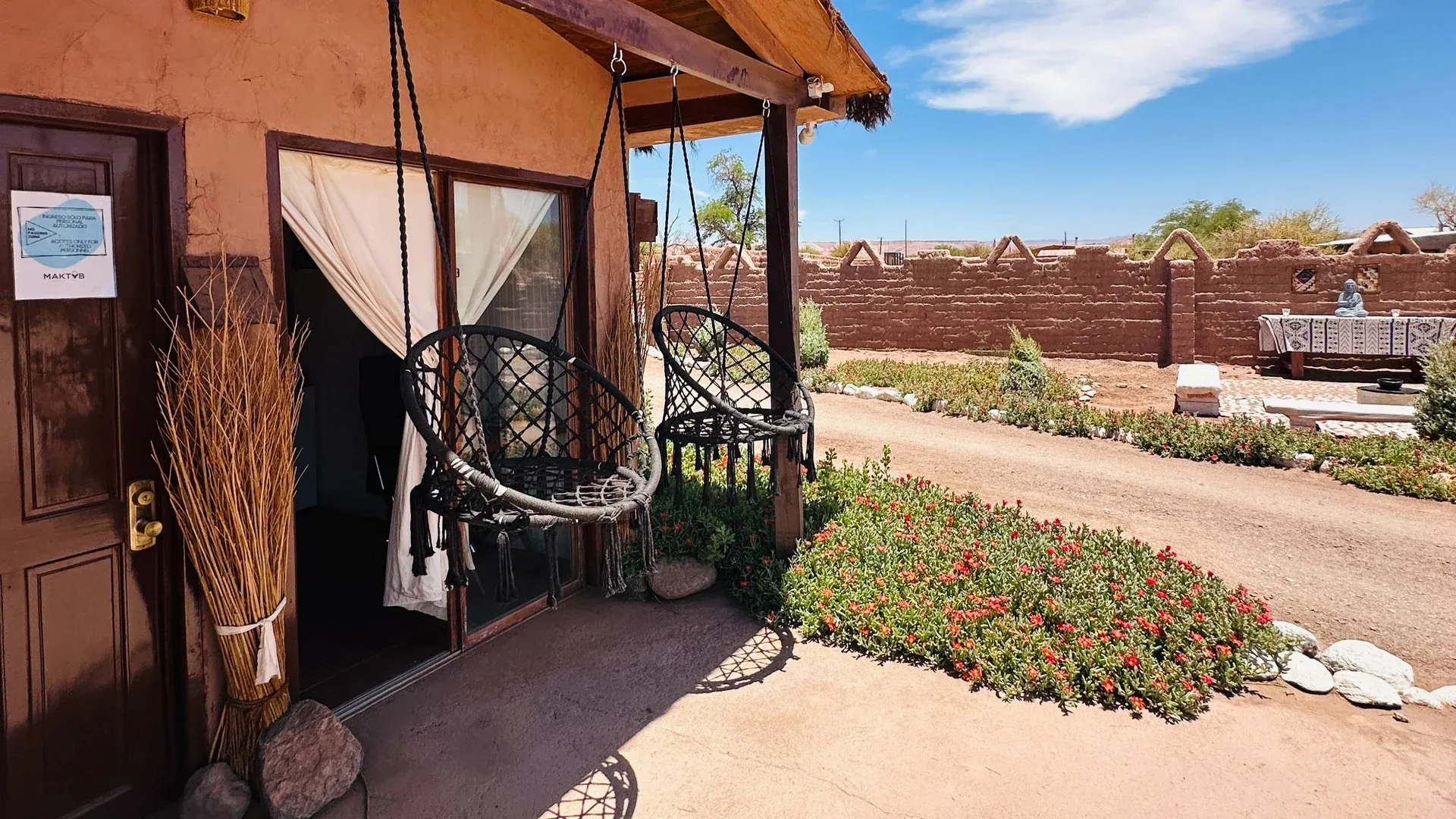 La arquitectura de Maktub Lodge Atacama está profundamente inspirada en el diseño tradicional atacameño, caracterizado por el uso del adobe, un material de construcción natural hecho de tierra y materiales orgánicos. Esta elección no solo rinde homenaje a las técnicas de construcción indígenas, sino que también proporciona aislamiento natural, manteniendo los interiores frescos durante el día y cálidos por la noche. Los techos planos y las esquinas redondeadas, típicos de la arquitectura del desierto, integran perfectamente el lodge en el paisaje circundante, creando un oasis de serenidad para los visitantes.