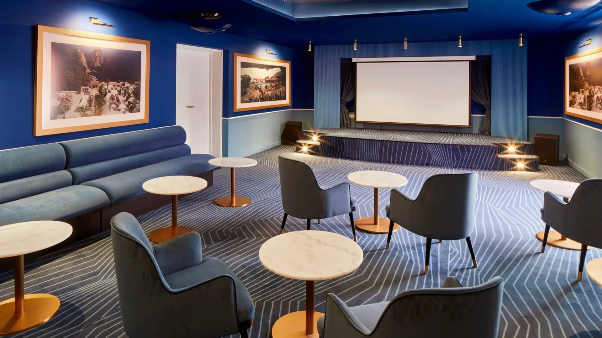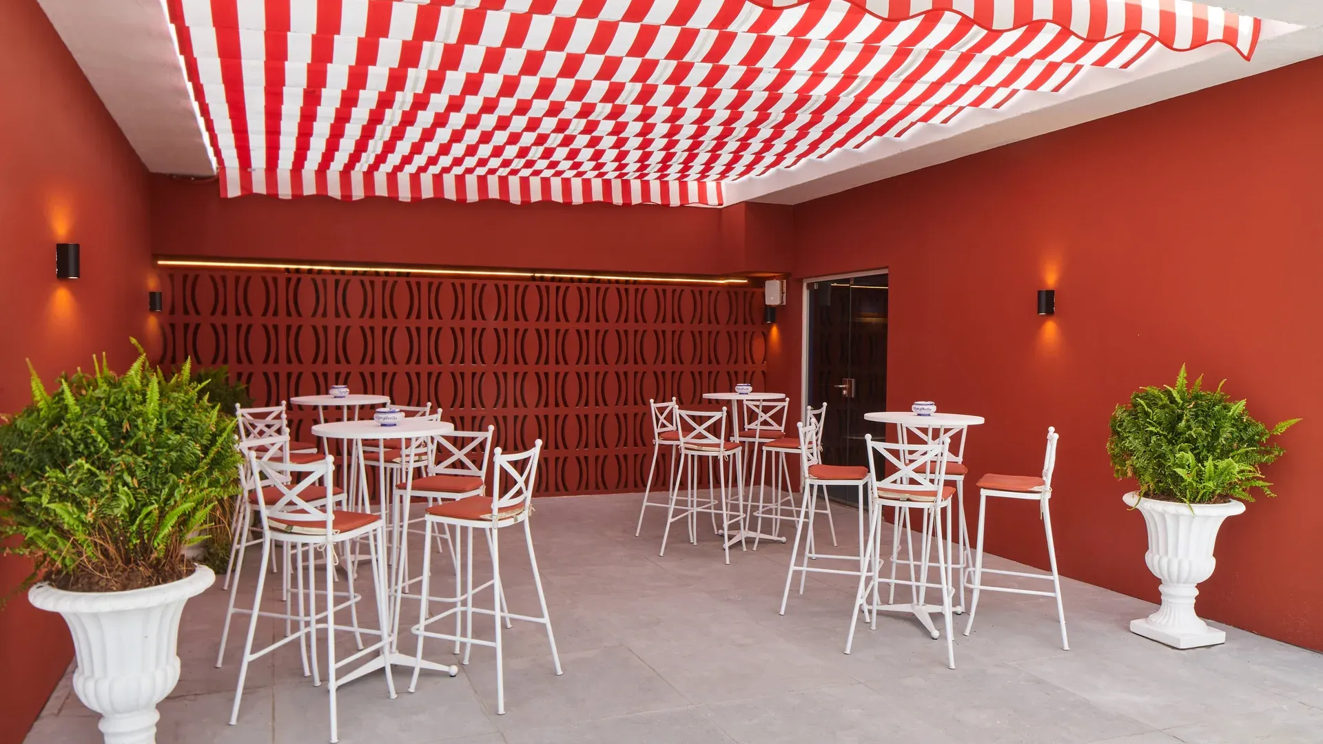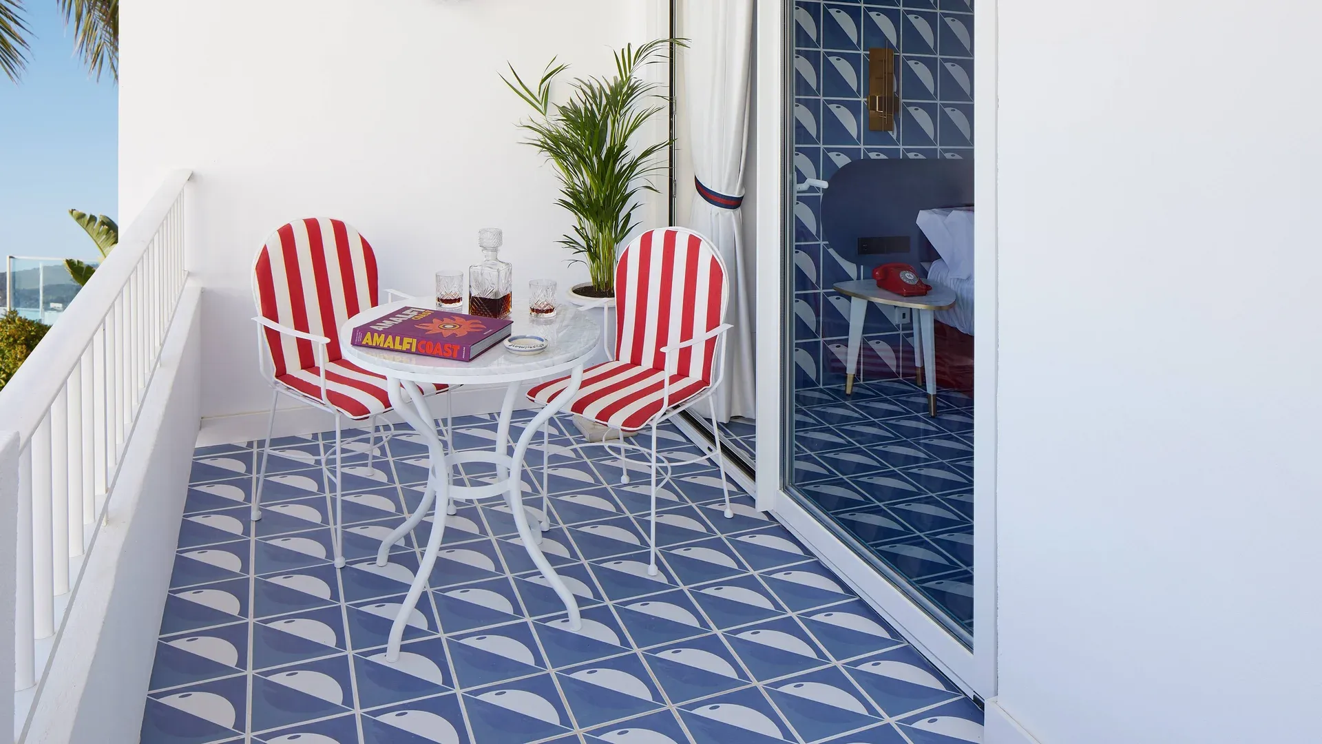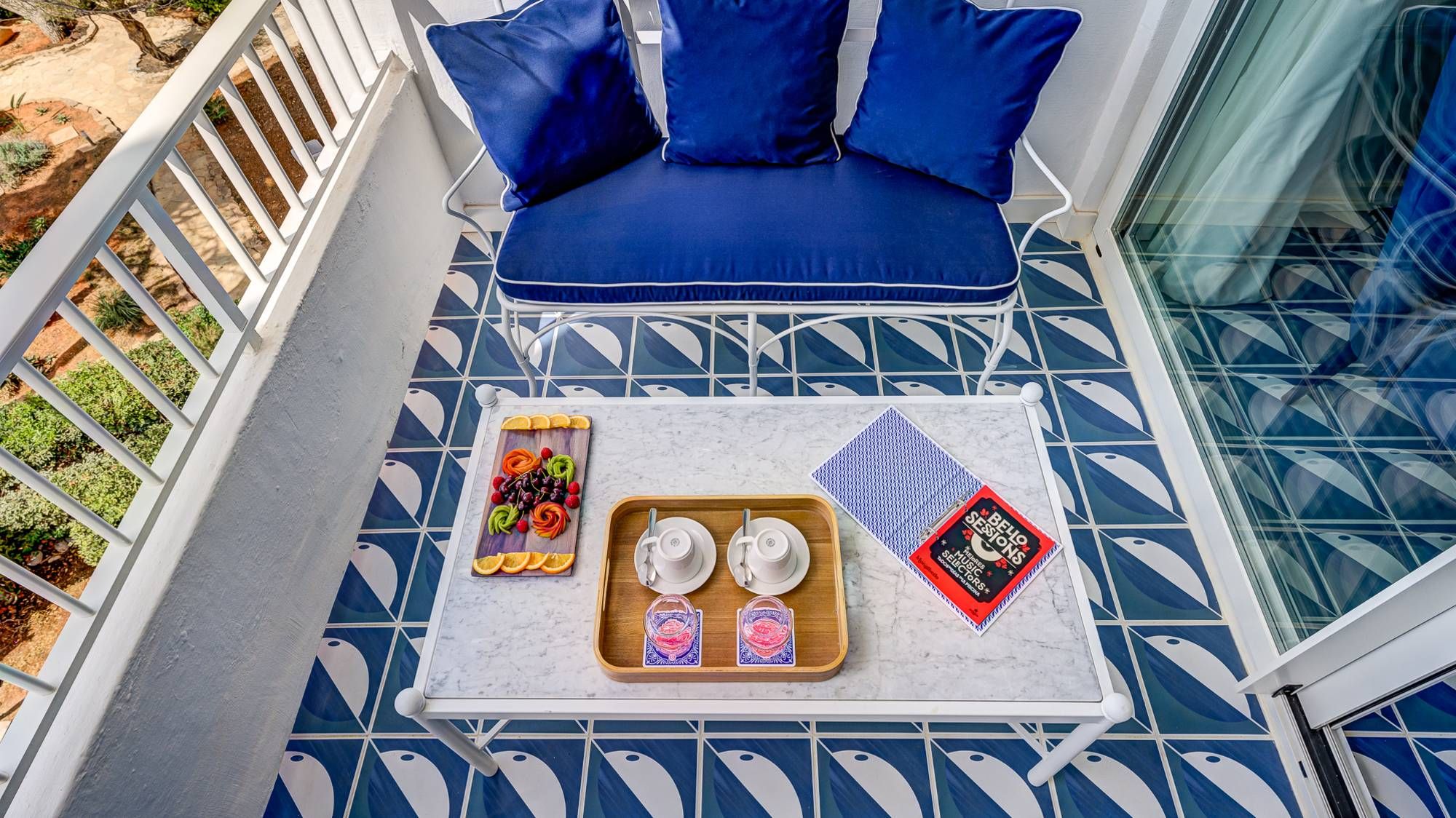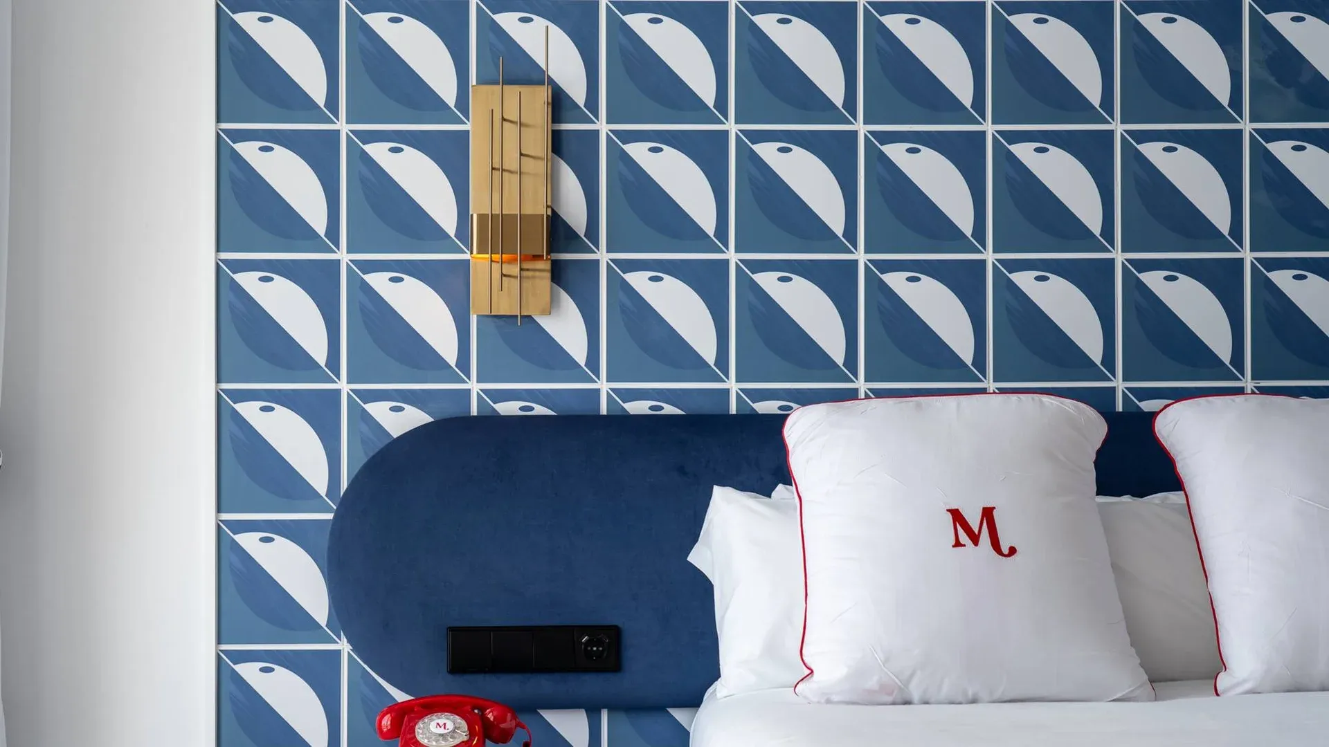 Cada una de las 167 habitaciones y 32 suites cuenta una historia, decorada con diseños exclusivos que rinden homenaje a figuras icónicas del pasado de Ibiza. El vestíbulo, con su tocadiscos vintage de los años 70 y el icónico Alfa Romeo Spider en la entrada, marca el tono para una estancia impregnada de nostalgia y elegancia. La piscina azul celeste, flanqueada por sombrillas retro en azul y blanco, ofrece vistas panorámicas al Mediterráneo, invitando a sumergirse en su tranquilidad.