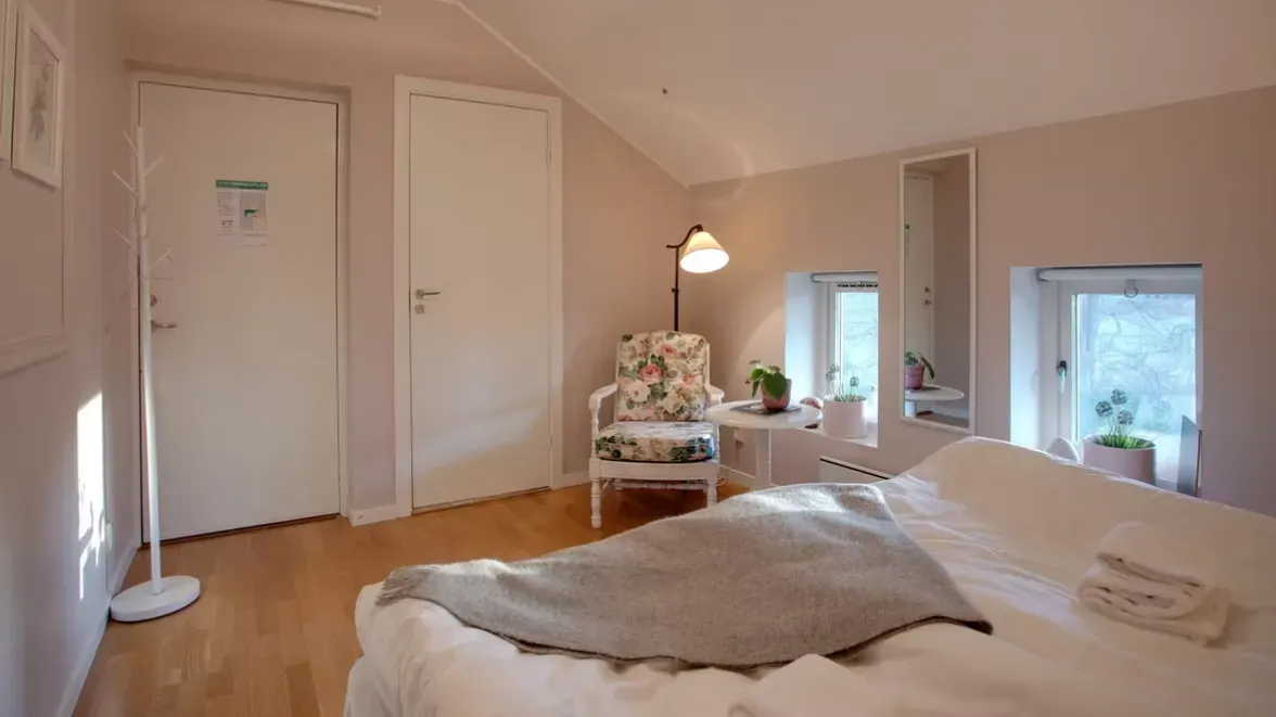 Al entrar, uno se siente transportado: cada habitación es una combinación cuidadosamente pensada de la serenidad del campo y la comodidad moderna, con televisores de pantalla plana, baños privados y Wi‑Fi gratuito. La atmósfera es tranquila y sin pretensiones: un refugio para el viajero consciente, ideal tanto para quienes están de paso como para quienes buscan una base tranquila en la región de Småland. Aunque el motel no cuenta con personal, el sistema de auto check-in es impecable. Los huéspedes reciben un código por correo electrónico o SMS el día de su llegada, que desbloquea las puertas y, de cierta manera, los secretos de esta propiedad tan pacífica. Para el desayuno, se puede disfrutar de un buffet en el cercano Hotel Slottsvillan, situado cuesta arriba, con un precio especial para los huéspedes.