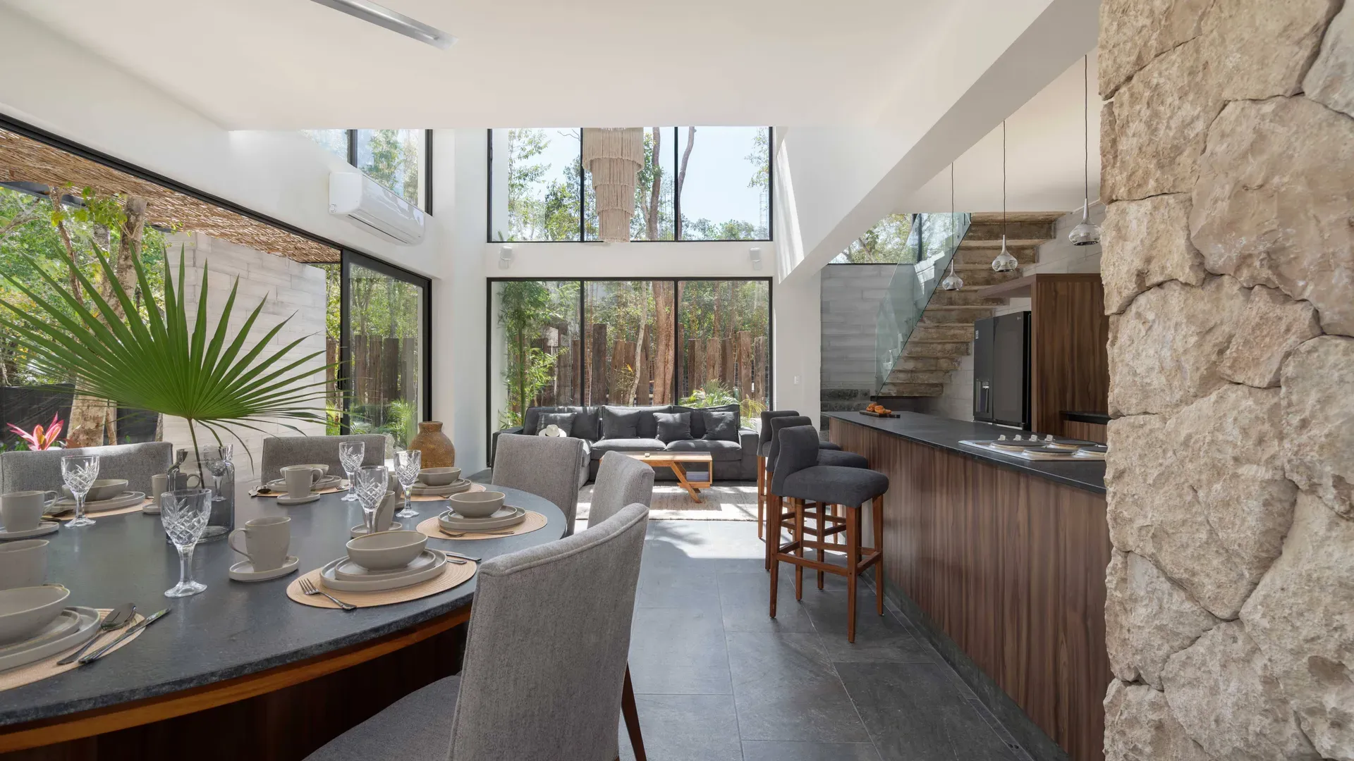 Cada villa ofrece un equilibrio perfecto entre privacidad y sofisticación, con cocinas totalmente equipadas, elegantes habitaciones y baños contemporáneos. La propiedad es ideal para viajeros que buscan una experiencia premium en Tulum, ya sea para un retiro tranquilo o para explorar el vibrante pueblo y sus playas cercanas.