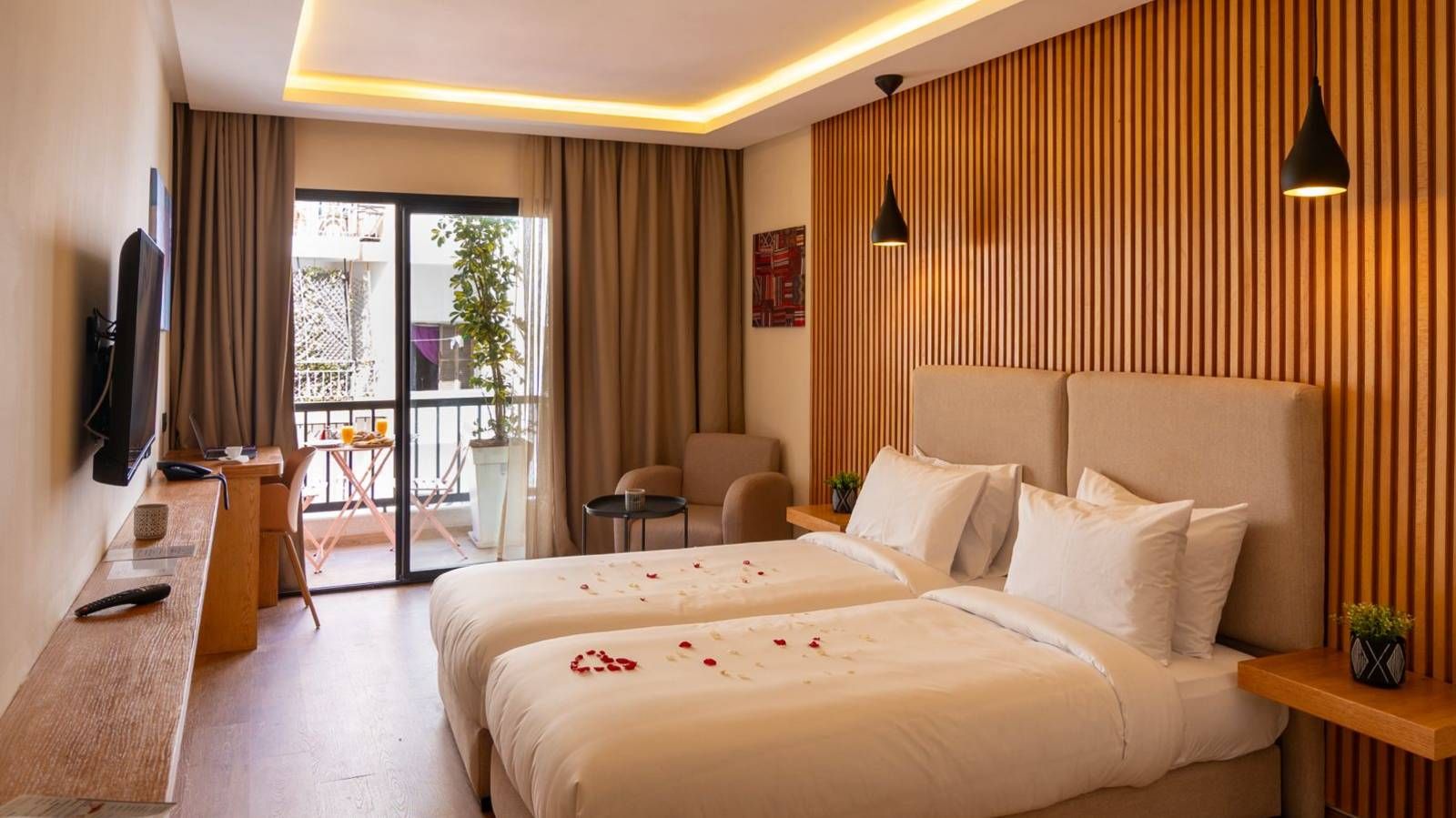 Unico Hotel Maarif combina el encanto histórico marroquí con una estética moderna, creando una experiencia visual y sensorial única. El diseño preserva el auténtico patrimonio del edificio, mezclándolo con interiores contemporáneos y elegantes que ofrecen a los huéspedes tanto comodidad como una sensación de pertenencia. Elementos tradicionales marroquíes, como azulejos intrincados y tonos cálidos, se combinan armoniosamente con muebles modernos y minimalistas para evocar un lujo discreto.